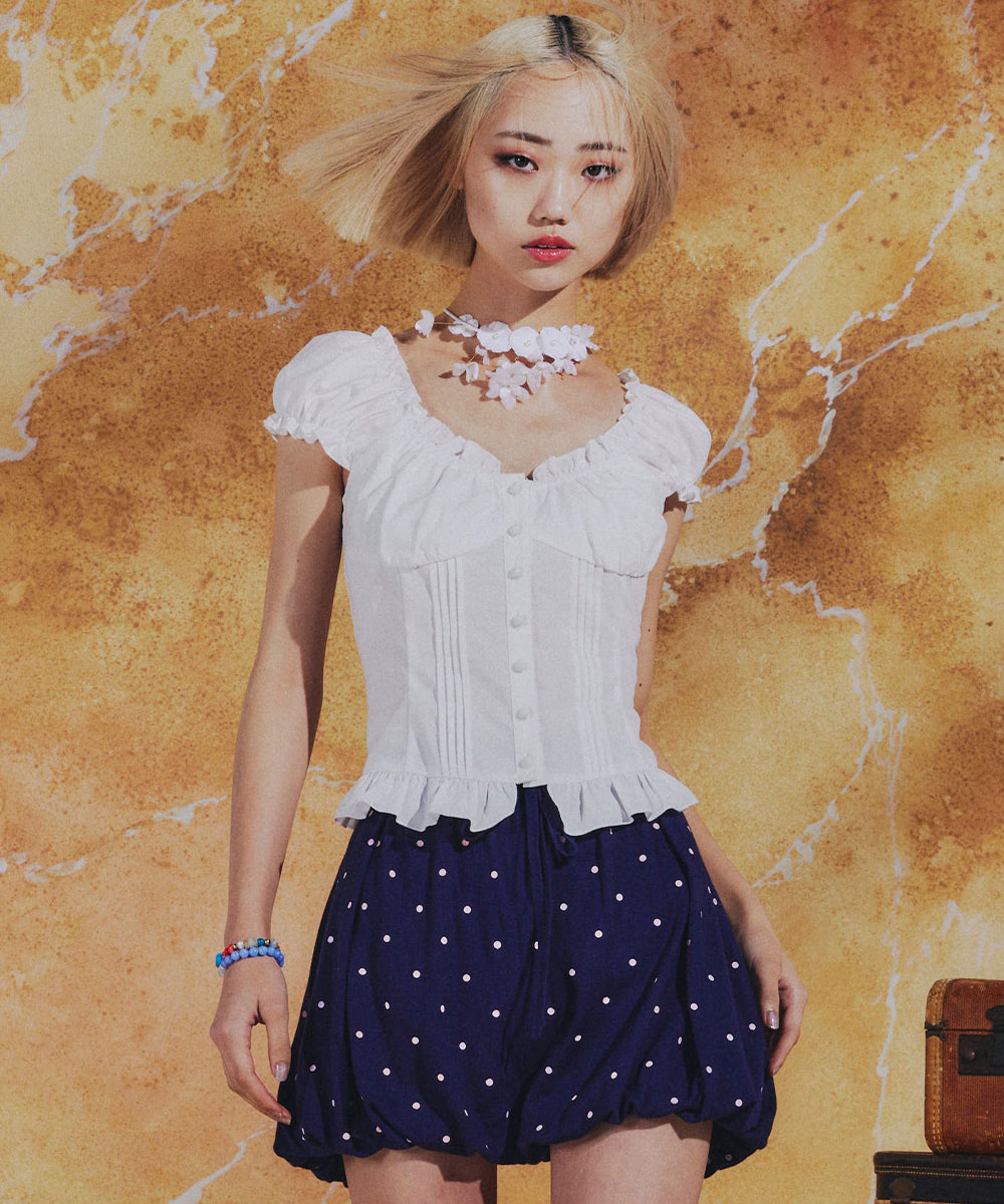 DSC / ギンガムチェック シャーリングオフショルトップス