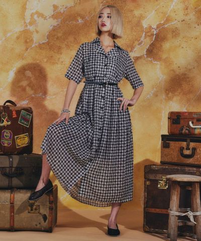 DSC / 幾何学柄 シフォンオープンカラーワンピース