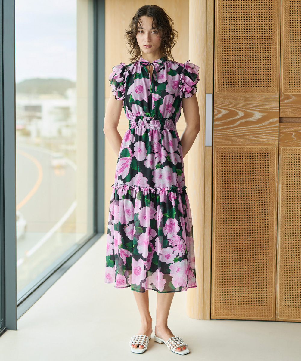 CORCOVADO / フラワーシフォン フラッターフリルドレス
