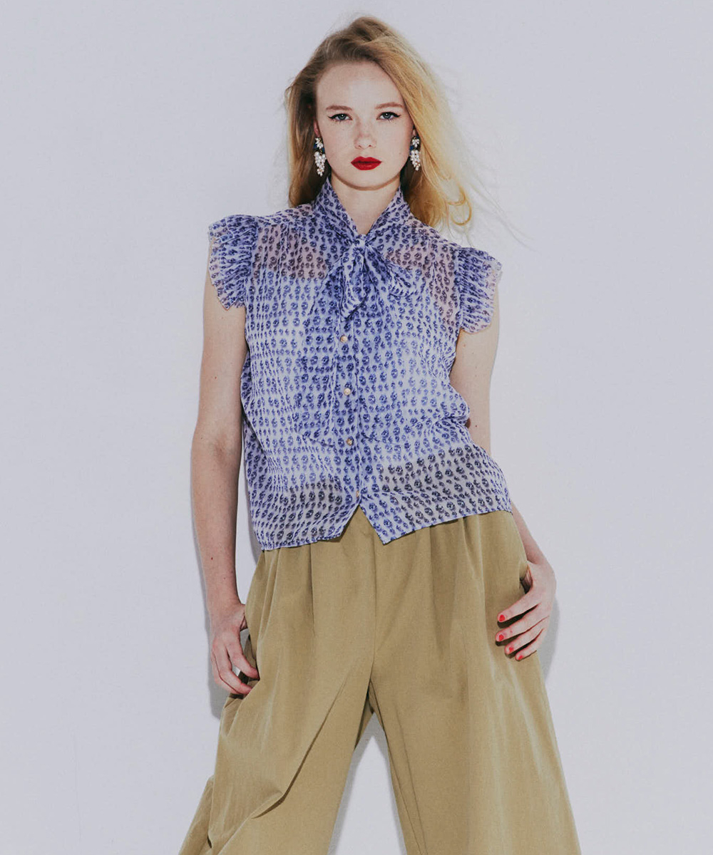 Sov. / ダイヤプリント シフォンボウタイブラウス(予約)