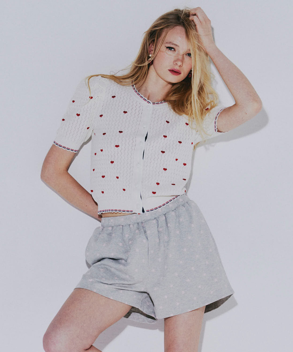 DSC / ハート刺繍パフスリーブサマーニット(予約)