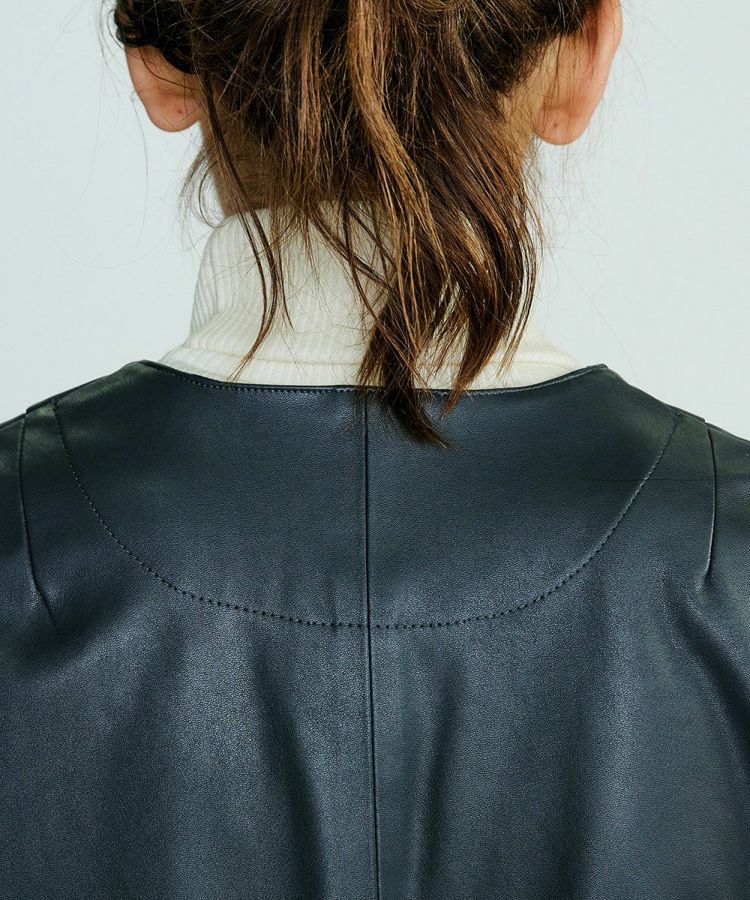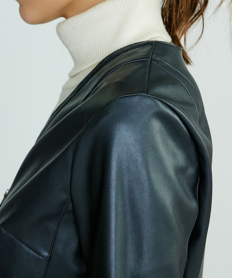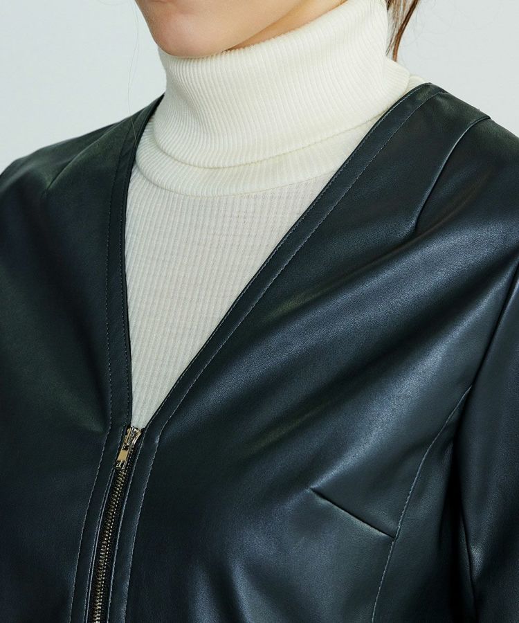 ノーカラーで仕上げたミニマルなデザインが魅力のフェイクレザーブルゾン。カーディガン感覚で軽やかに羽織れる一枚です。軽やかな着心地で長時間着用しても快適さをキープ。バランスの取りやすい程よいショート丈で、すっきりとしたシルエットを演出します。エッジの効いたスタイリングからシックな大人のスタイルまで幅広く使えるのが嬉しい!