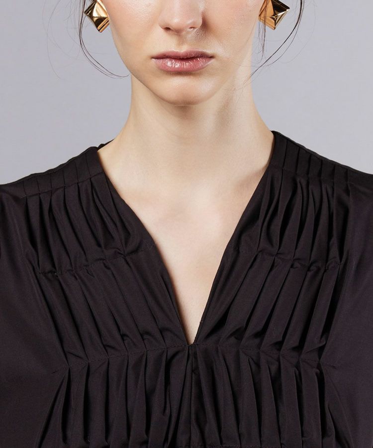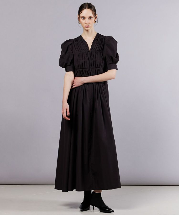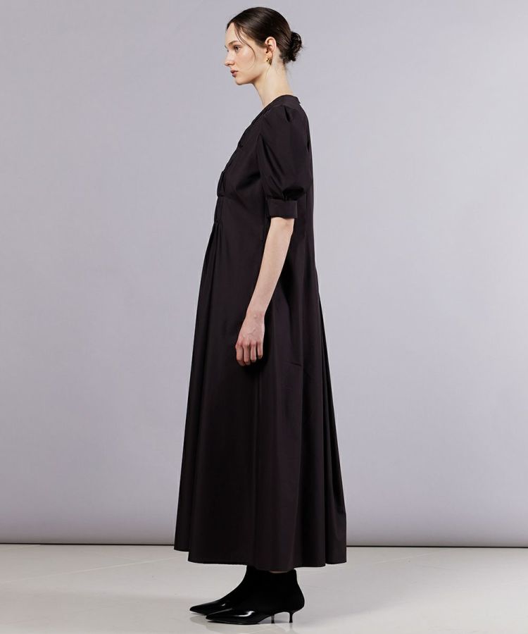 クラシカルな雰囲気が漂う、パフスリーブワンピース。ボリュームのある袖が腕まわりをさりげなくカバーし、フェミニンなエッセンスを添えてくれます。胸元に施したタックが、立体感と程よい動きをプラス。シワになりにくく、滑らかな肌ざわりと軽さを兼ね備えたタイプライター生地も魅力的です。