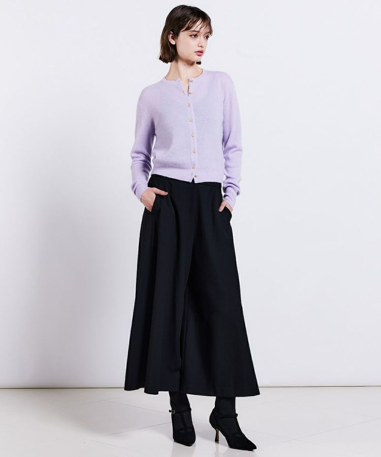 1歳未満のアンゴラ産毛から刈り取った希少繊維、SUPER KID MOHAIRを使用したカーディガン。非常に細く柔らかな毛糸で、ふんわりとした肌触りが抜群です。ベーシックなクルーネックタイプで、アンサンブルできれいめに着こなすのはもちろん、カジュアルなカットソーに合わせても品良く仕上げてくる一枚。金ボタンがさりげないエレガンスをプラスしています。