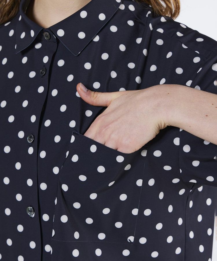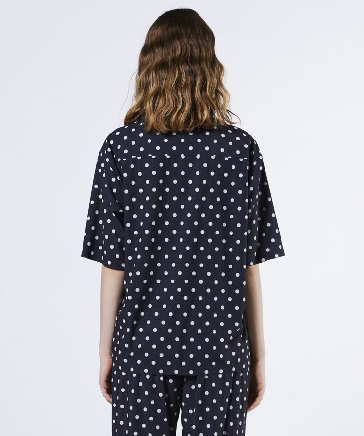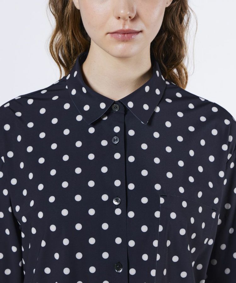 全面にあしらったドットプリントが目を惹く、存在感抜群のシャツ。ストレッチ性に優れたポリエステルトリコット素材を使用し、接触冷感と吸水速乾機能で夏の暑さにも快適に対応します。カラーは、爽やかなデニムプリントとシックに決まるモノトーンの2色展開。カジュアルからモードまで幅広い着こなしが楽しめます。