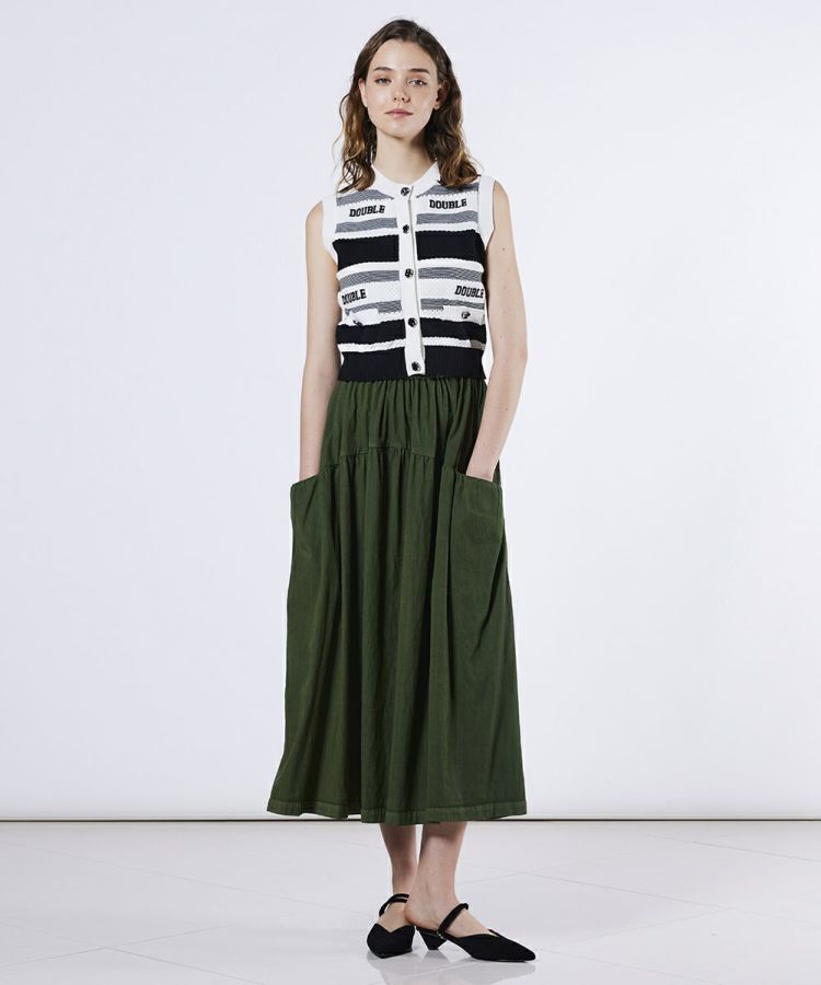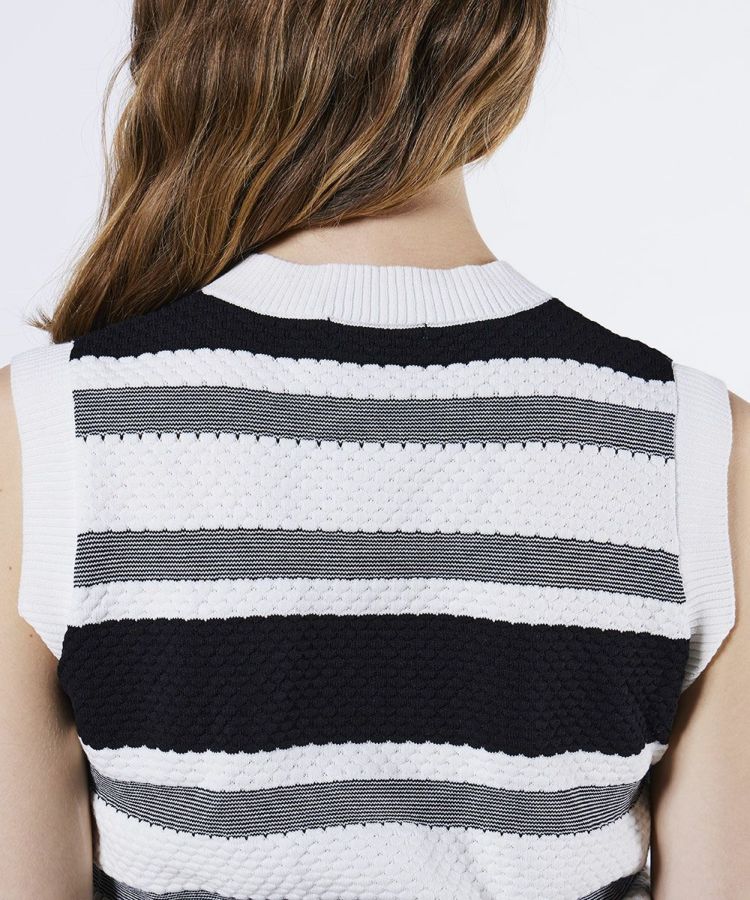 ドライタッチな肌ざわりと、立体感のある表情が魅力のサマーベスト。凹凸のある表面感で柄が浮き立つように表現しました。全体にリピートされたブランドロゴの刺繍が、デザインのさりげないアクセントに。コンパクトなシルエットなのでボトムとのバランスを取りやすく、使い勝手も抜群です。