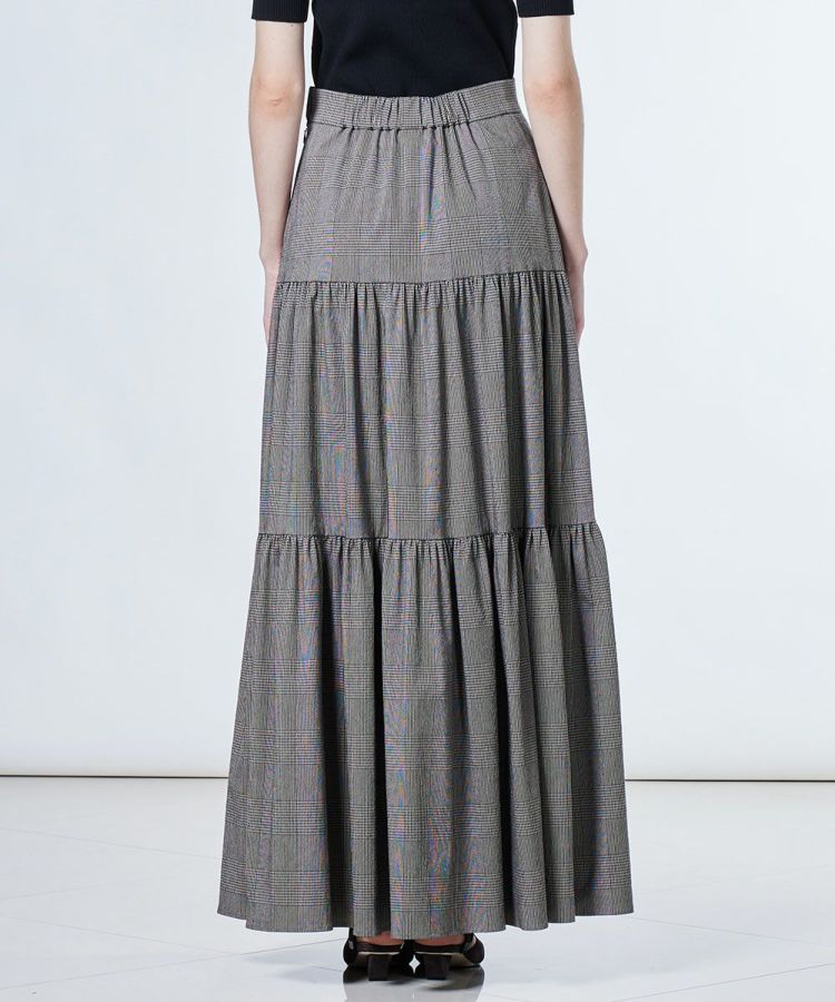 ストレッチ性に優れたラミー素材を使用し、軽やかで快適な着心地が魅力のロングスカート。落ち着いたカラーリングながらも、ティアードシルエットで女性らしく華やかな印象に仕上げました。Tシャツ・スニーカーでカジュアル路線も良し、あえてガーリーなブラウス、パンプスや厚底サンダルと合わせるのもおすすめ。ウエストはうれしい総ゴム仕様で、デイリー使いにぴったりです。