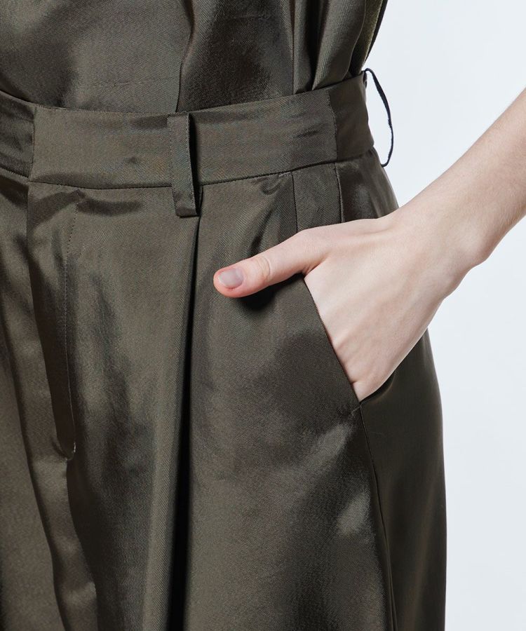 シルクのような肌ざわりが魅力的なナチュラルシルキー素材を使用したパンツ。歩く姿がとてもエレガントで美しく、佇まいをワンランクアップしてくれるアイテムです。接触冷感、吸水速乾といったうれしい機能性も備え、暑い季節でも快適な着心地をキープ。イージーケアで扱いやすく、デイリー使いにぴったりなアイテムです。