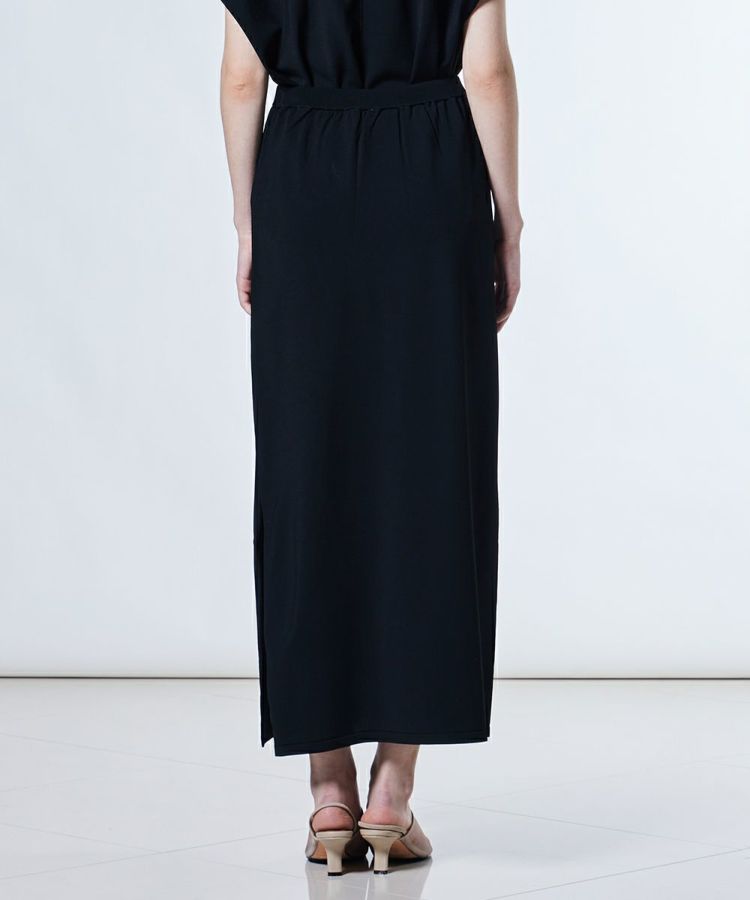 レーヨンとポリエステルの撚糸素材を使用した、なめらかで上品な肌ざわりが魅力のロングスカート。身体のラインを拾いすぎない絶妙なサイズ感で、タイトシルエットが苦手な方にも取り入れやすいデザインに仕上げました。サイドにはスリットを入れて歩きやすさも配慮。同素材のプルオーバー(型番:0309080253)と合わせれば、ワンピースようなセットアップスタイルも楽しめます。
