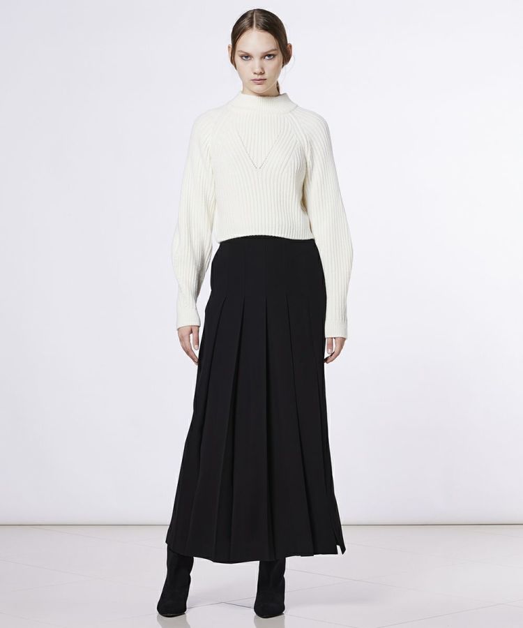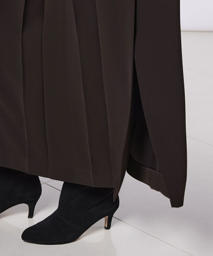イージーケアで扱いやすいツイル素材を使用したロングスカート。幅広のボックスプリーツが生み出す立体感のあるシルエットは、クラシカルながらも存在感を放ちます。歩くたびに広がる柔らかなフレアが、女性らしさとエレガントなムードをプラス。単品使いはもちろん、同素材のブルゾン(型番:0305090254)とのセットアップスタイルなら、特別感のあるコーディネートを楽しめます。
