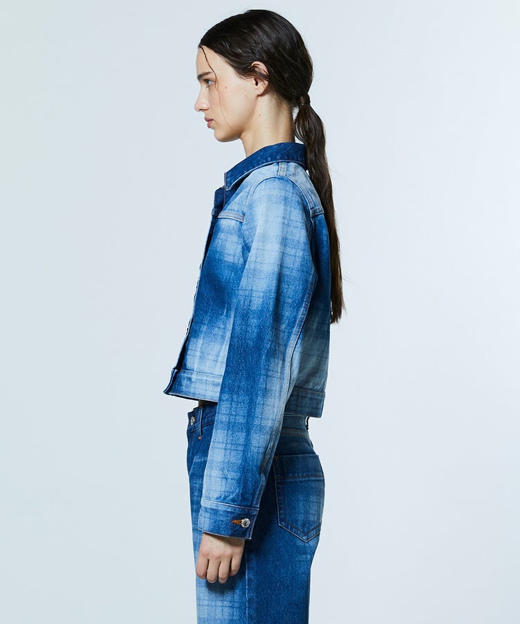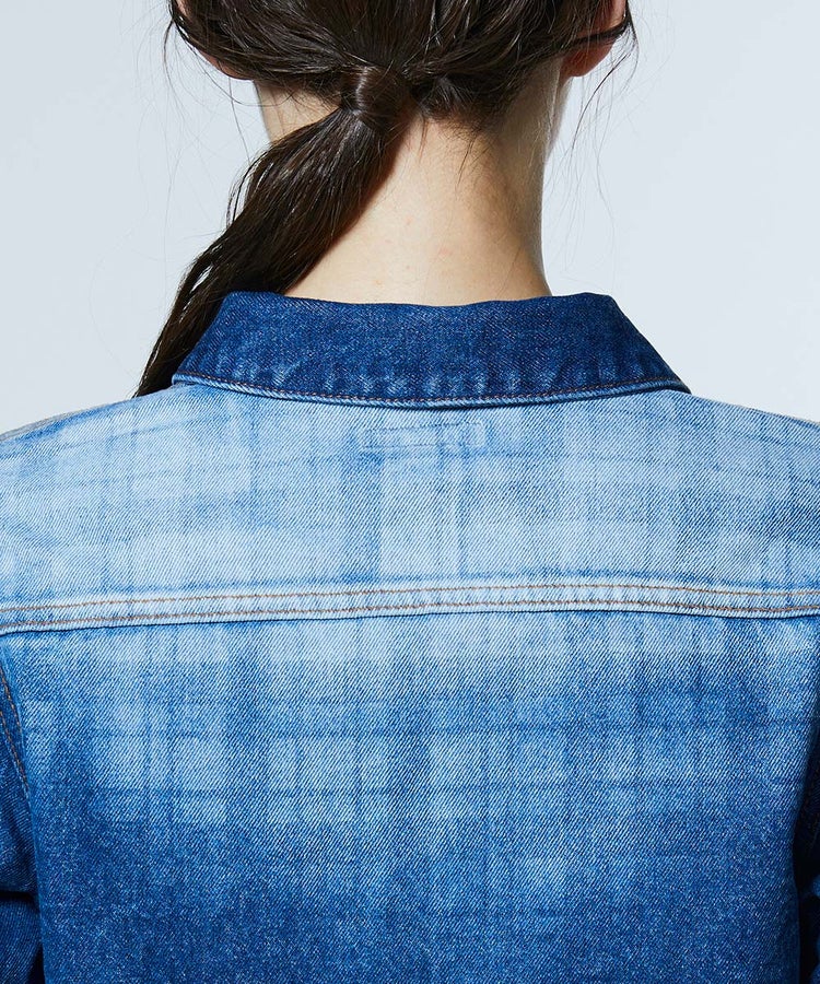 独特なムラ感とさりげないチェック柄が目を惹く、個性あふれるデニムシャツ。弱テンションで織り上げた生地が、ヴィンテージライクな風合いをいっそう引き立てます。ショート丈のシルエットで全体のバランスが取りやすいのも魅力。同素材のパンツ(型番:0206351261)と合わせれば、洗練された大人のセットアップスタイルが完成します。