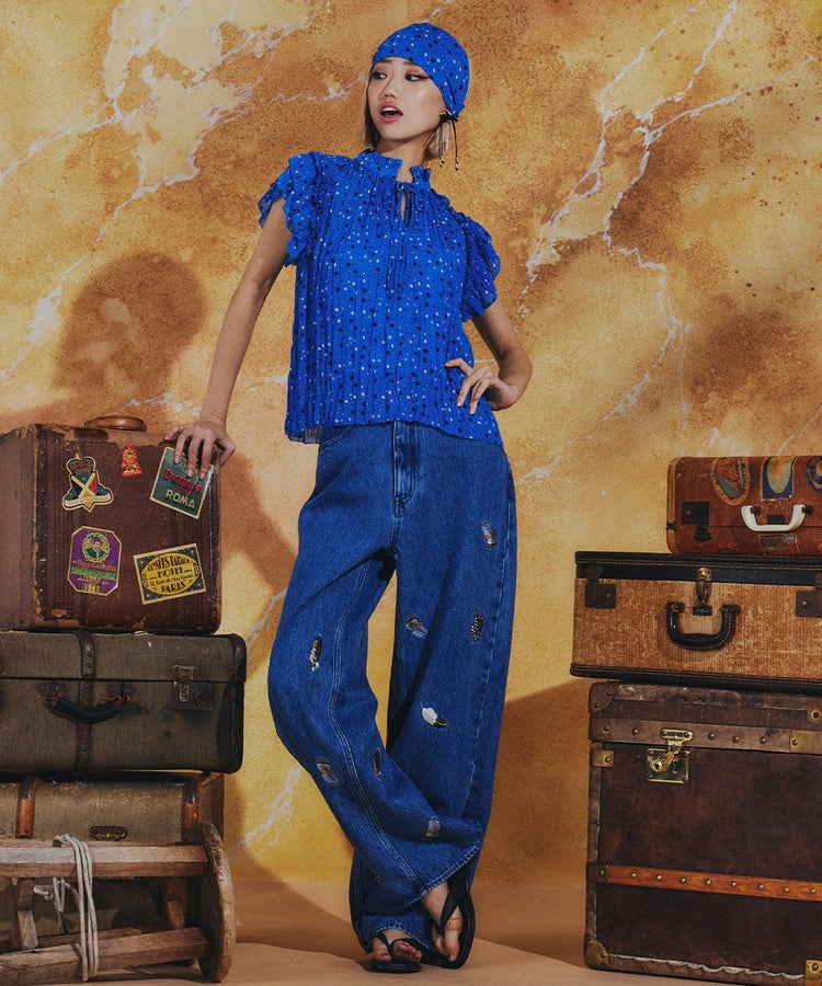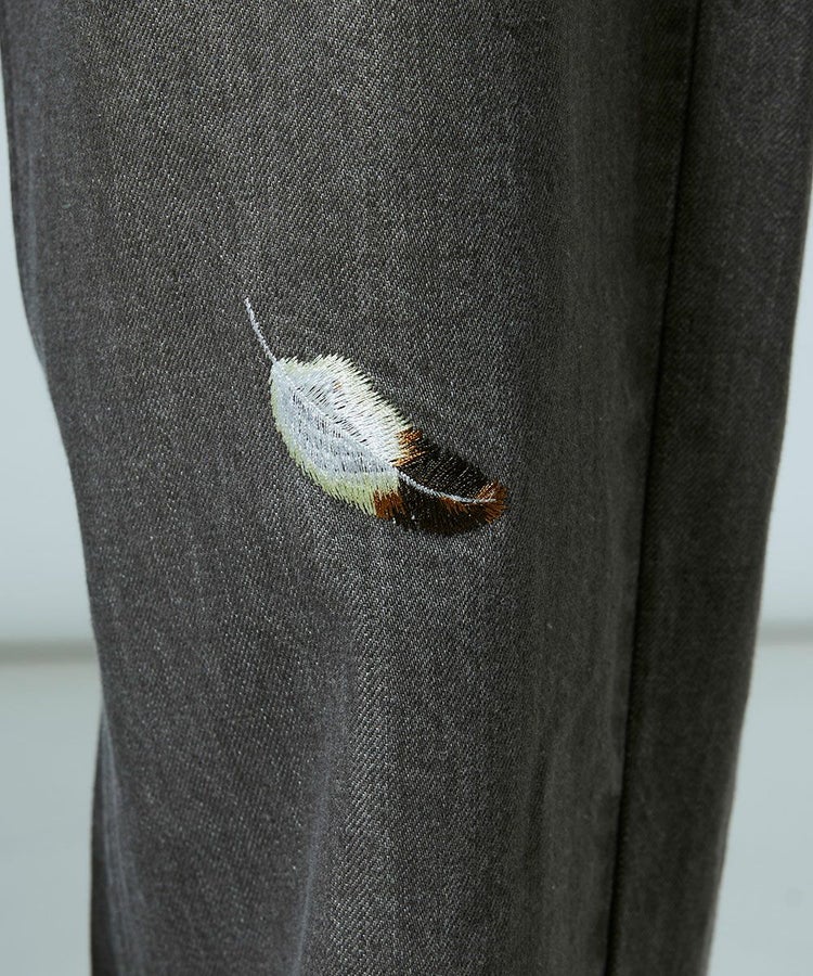 フェザー刺繍を全面にあしらい、存在感のあるデザインに仕上げたデニムパンツ。程よくゆとりをもたせたシルエットが、リラクシンな雰囲気を演出します。カラーはヴィンテージライクなインディゴと、きれいめな印象のブラウンの2色展開。繊細で愛らしい刺繍がアクセントとなり、大人かわいいスタイリングを叶える一本です。