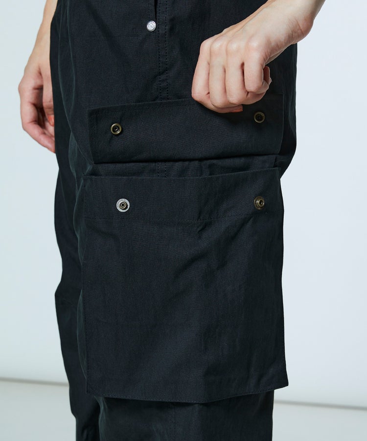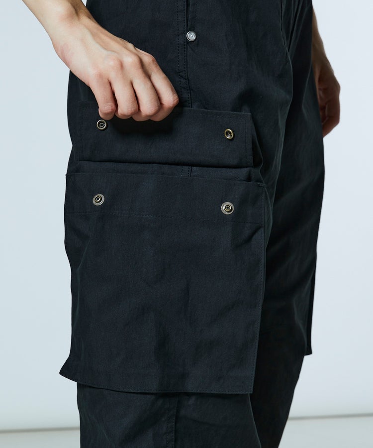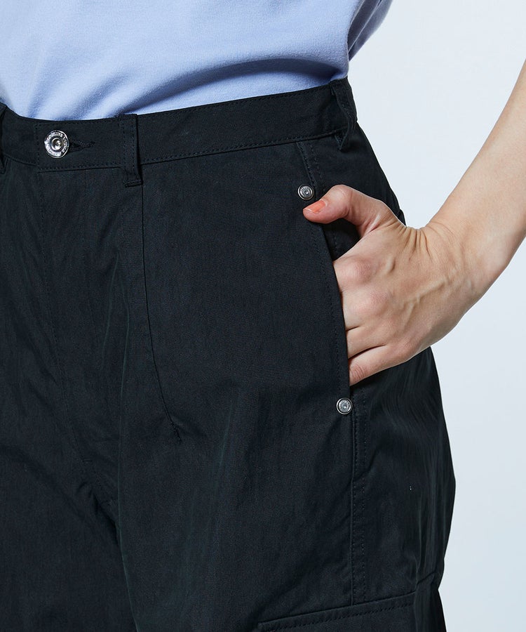 程よくゆとりを持たせたストレートシルエットで、きれいめにも穿きこなせるカーゴパンツ。ワッシャー加工を施すことで、ナチュラルでこなれた風合いに仕上げました。サイドのポケットがさりげないデザインアクセントに。定番のカーキと使い勝手の良いブラックの2色展開で、トップスを選ばず幅広いスタイリングに活躍する一本です。