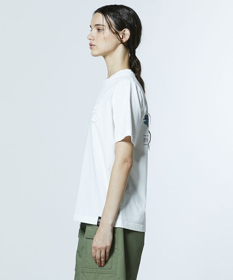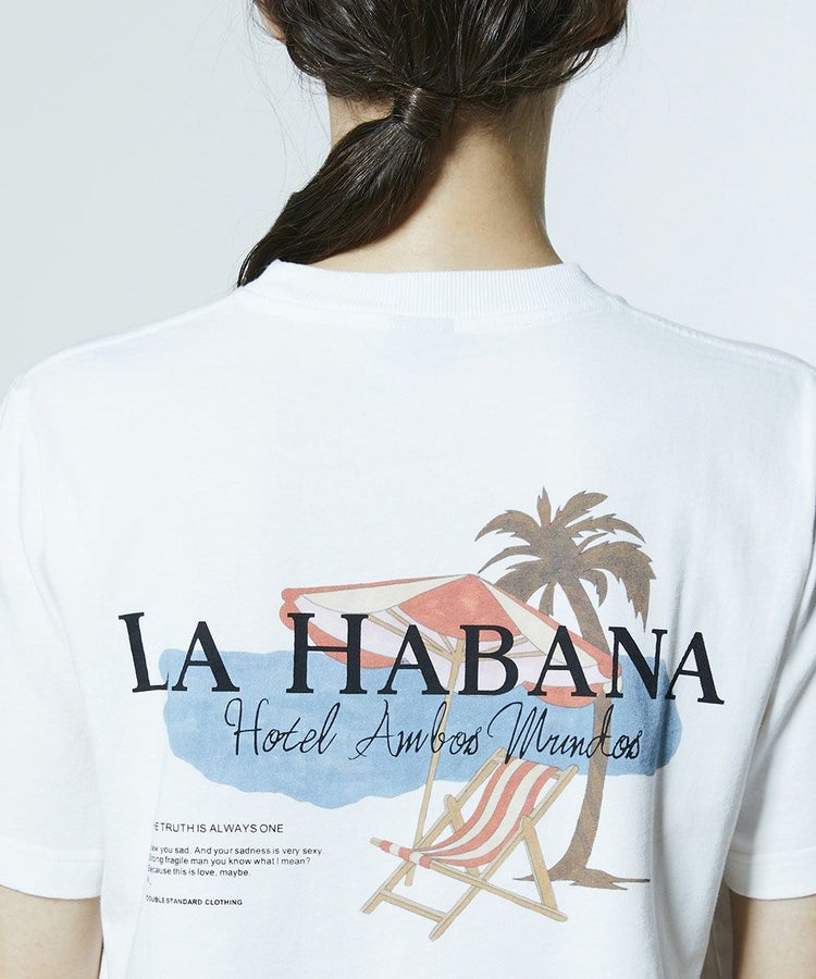 ナチュラルなシャリ感が魅力的なTシャツ。背面には大胆にリゾート調のグラフィックをあしらい、後ろ姿まで抜かりないデザインに仕上げました。フロントの胸元にはブランドの頭文字を立体的に施し、さりげないアクセントをプラス。ヴィンテージTシャツのような風合いで、こなれ感を演出してくれる一枚です。