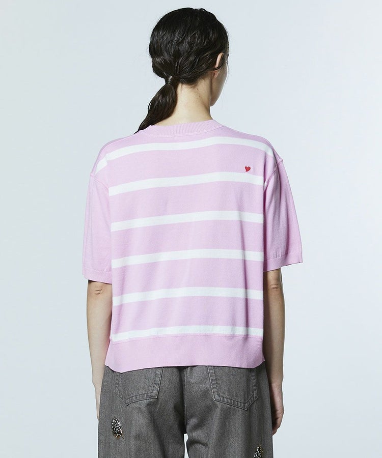 背面にボーダー柄をドッキングさせた、デザイン性の高いニット。コットン100%素材を使用し、柔らかな肌触りで快適な着心地を実現しました。カラーは、女性らしい印象のピンク×オフホワイトと、クールで着回しやすいブラウン×ベージュの2色展開。シンプルながらも後ろ姿にアクセントを効かせた一枚は、ボトムスを選ばず幅広いスタイリングで活躍します。