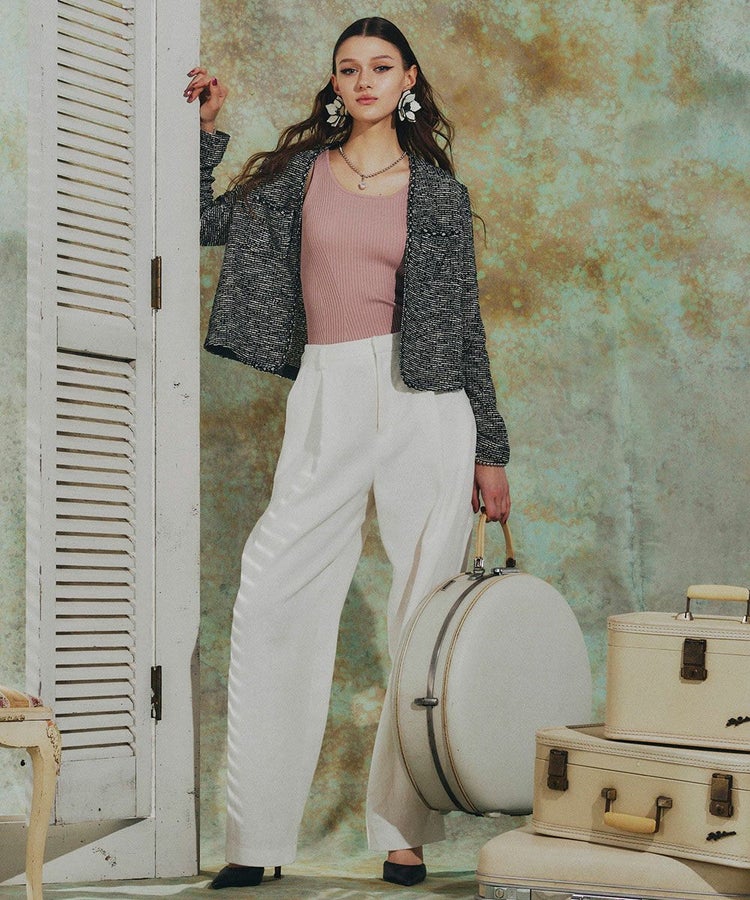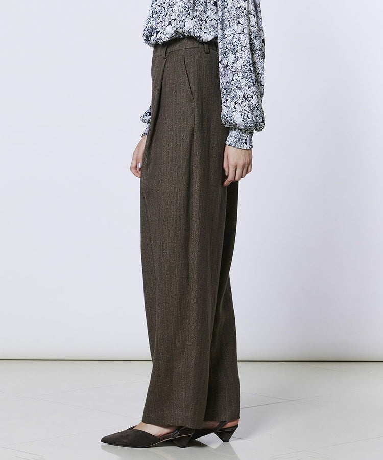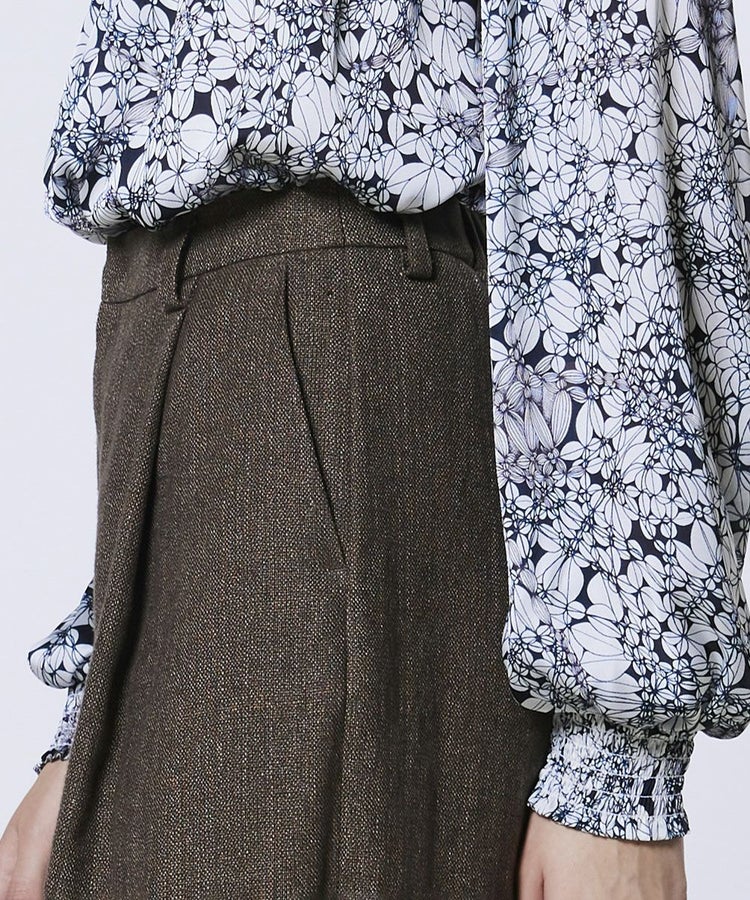 程よくゆとりのあるシルエットで、さりげなくスタイルカバーも叶うパンツ。ウエストにタックを施したイージーパンツ仕様で、腰まわりに程よい余裕があり、動きやすさと快適な穿き心地を実現しました。リラックス感がありながら品よく見えるのも嬉しいポイント。デイリーからオフィスカジュアルまで幅広く活躍し、同素材のジャケット(型番:0305240261)やジレ(型番:0304242261)と合わせれば、オケージョンシーンにも対応できる一本です。