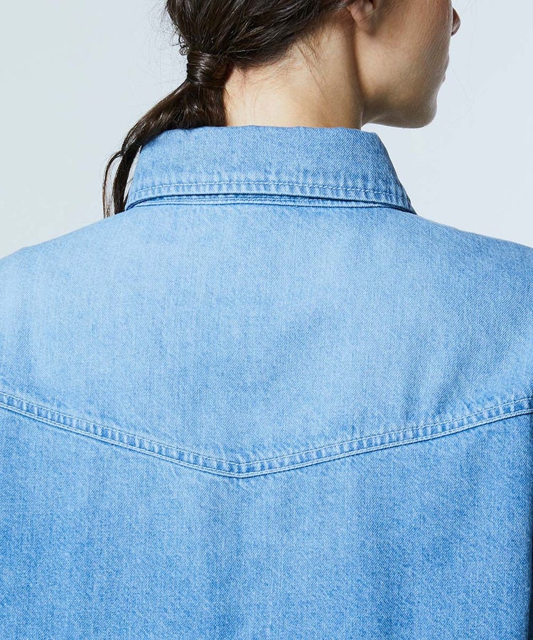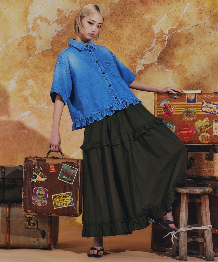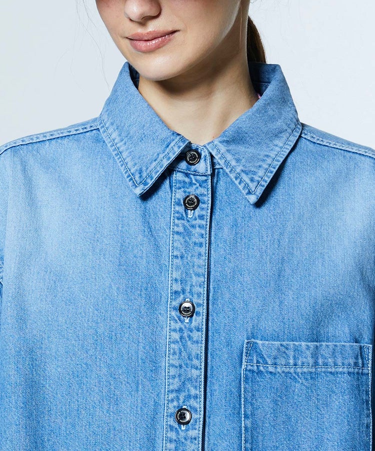 コットン100%の柔らかな肌触りが心地よいデニムシャツ。裾にあしらったフリルがカジュアルになりすぎないバランスを生み、大人の可愛らしさをさりげなく演出します。カラーは爽やかなオフホワイトと、ヴィンテージ感のあるインディゴの2色展開。襟付きデザインがきちんと感をプラスし、大人かわいいカジュアルスタイルを楽しめる一枚です。
