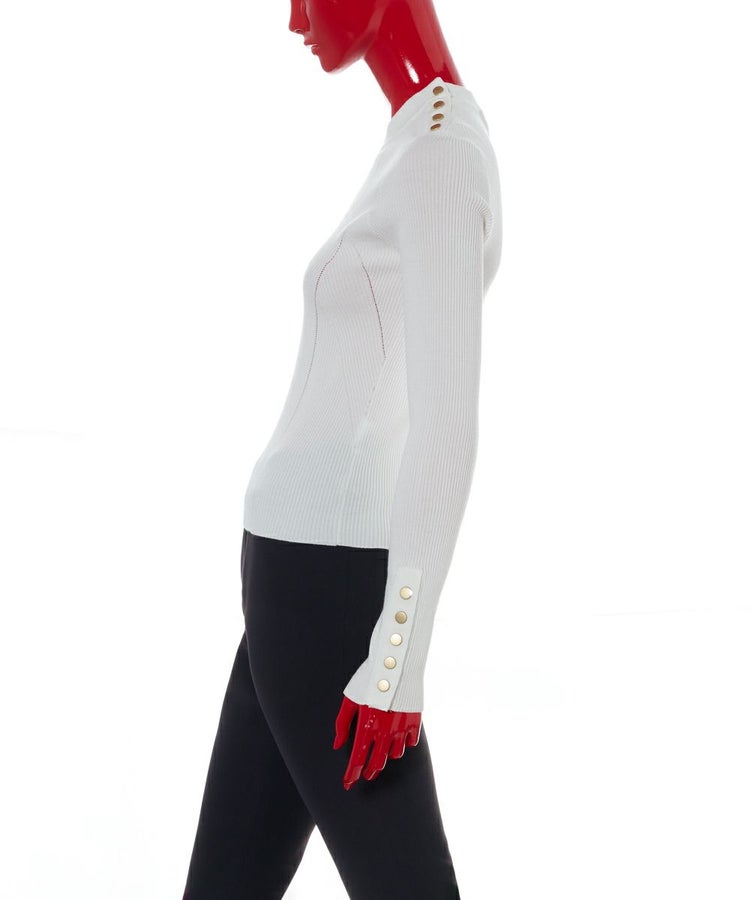 着回し力が高い万能なプルオーバーニット。定番のダル糸を使用して編み立て、程よくフィットするシルエットが女性らしいラインを引き立てます。ショルダーや袖には、艶を抑えたシャンパンゴールドのドットボタンをあしらい、クラシカルで上品なアクセントをプラス。ボリュームのあるスカートと合わせることで、メリハリのあるバランスが生まれ、全体をすっきりとスタイル良く見せてくれる一着です。