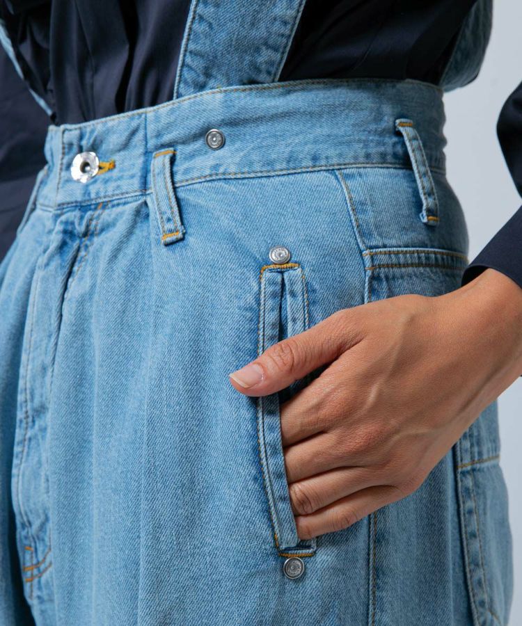 深くタックをとりゆったりとしたワイドストレートでノンストレスな穿き心地のサロペット