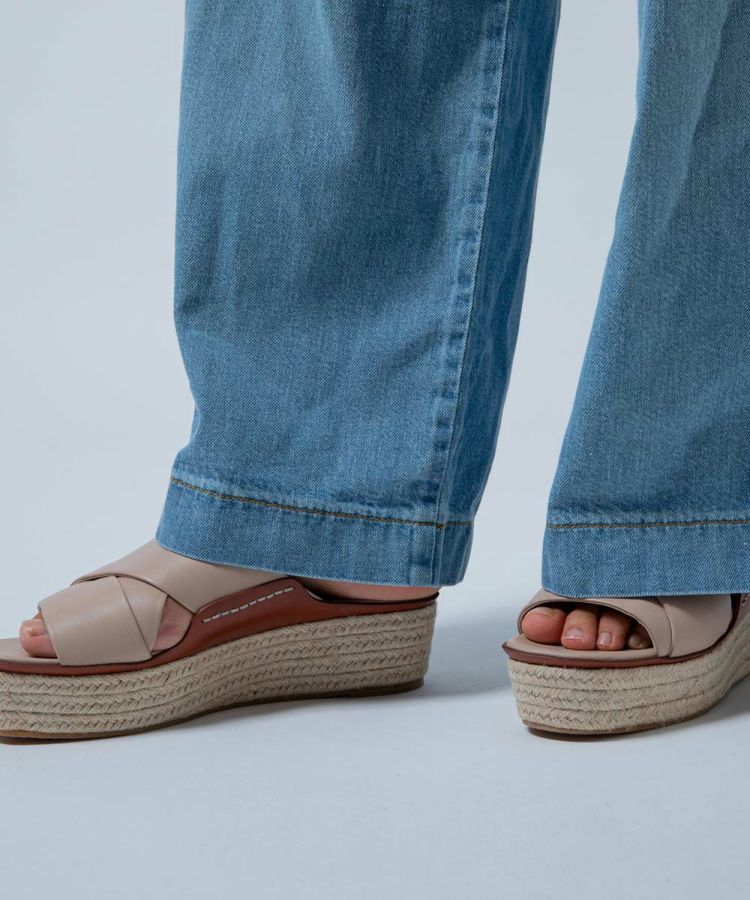 Tシャツ・スニーカーでカジュアル路線も良し、あえてガーリーなブラウス、パンプスや厚底サンダルと合わせるのもおすすめ。
