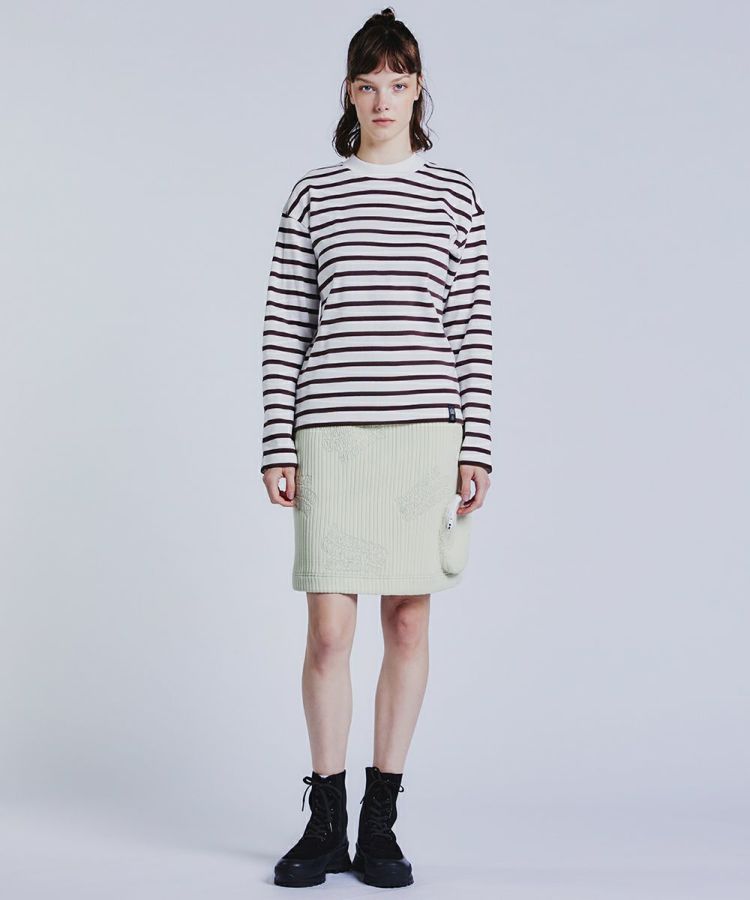 ふっくらとしたキルトジャガード生地のミニスカート。スカート裾に配した立体的なポケットがキュートなアクセントになっています。ウエストはゴム仕様になっており、ストレスフリーな穿き心地なのもうれしいポイント。素材に立体感があるので、ラインを強調することなく、ミニ丈でもヘルシーに着られます。ブーツで引き締めたり、ヒールシューズで女っぽく仕上げるのもおすすめです。