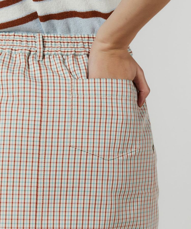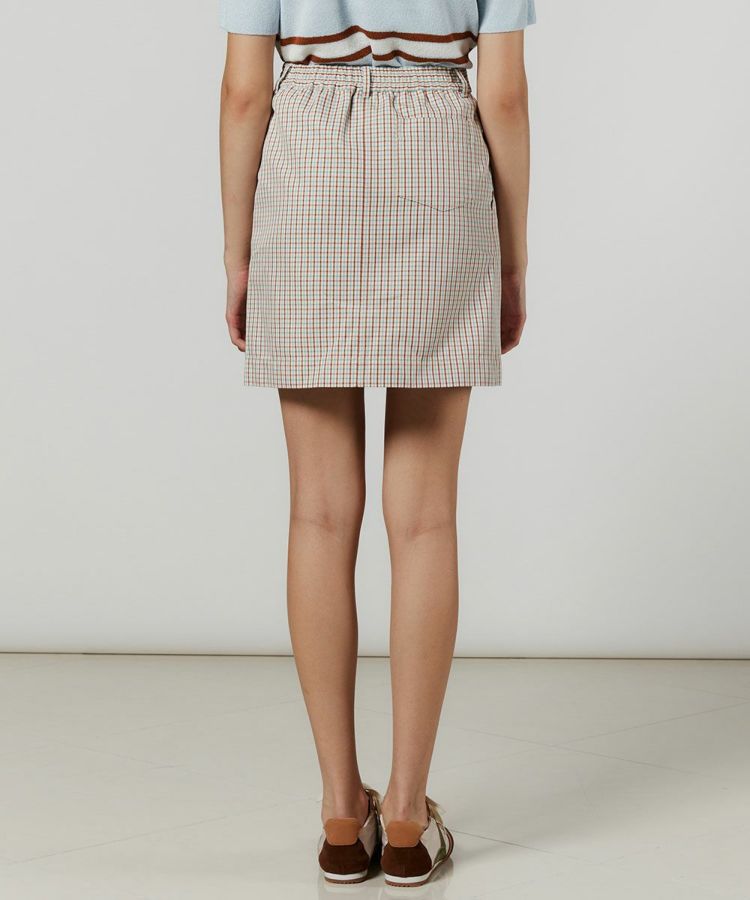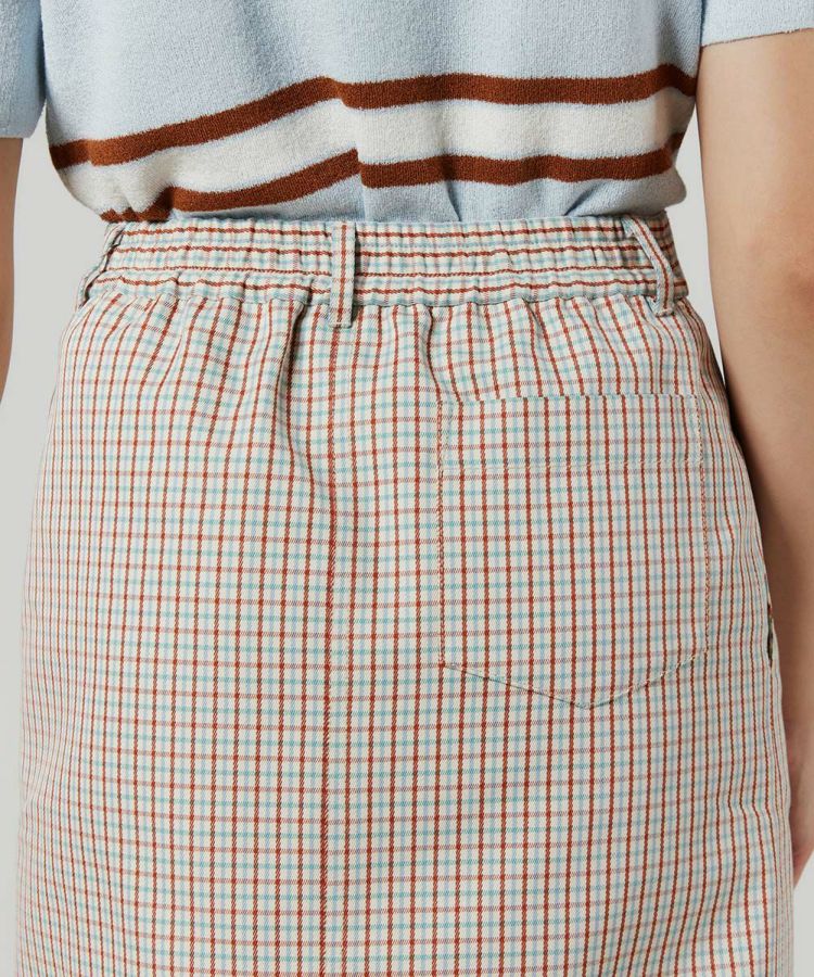 チョコミントのような柔らかなカラーリングがかわいいチェック柄のミニスカート。ウエストを高めに設定することで、脚長効果抜群です。また、バックはゴム仕様なので穿き心地楽チン。後ろポケットや左ポケットのそばにあしらったハートの刺繍など、ディテールも抜かりがありません。ボタンにはゴールドカラーをチョイスし、ポップでありながら高見えするのも密かな魅力。