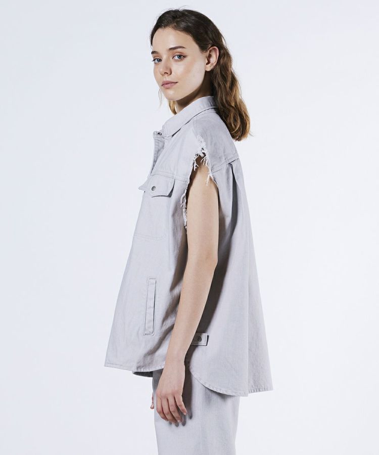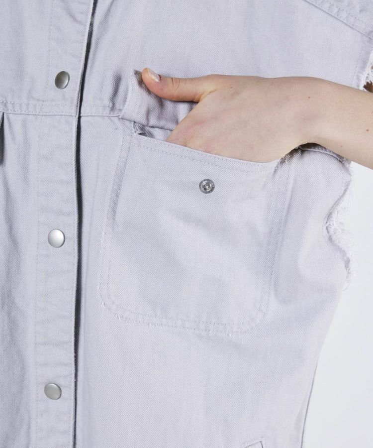 一枚着はもちろんレイヤードでも活躍する、ビッグシルエットのデニムベスト。ムラ染めの風合いが特徴的なデニム素材にバイオ加工を施し、ヴィンテージのような味わい深い表情に仕上げました。爽やかなライトグレーが涼しげな印象で軽やかに着こなせるのも魅力。羽織るだけでこなれ感が出る優秀アイテムです。