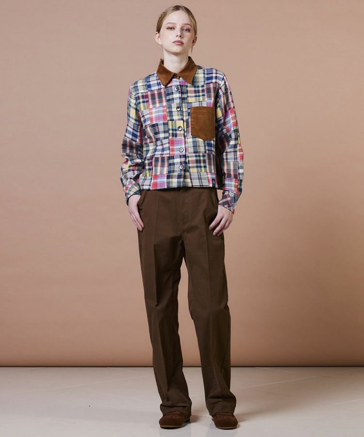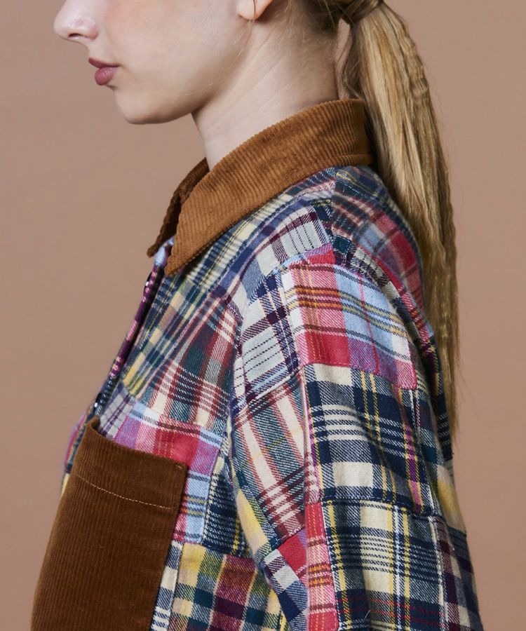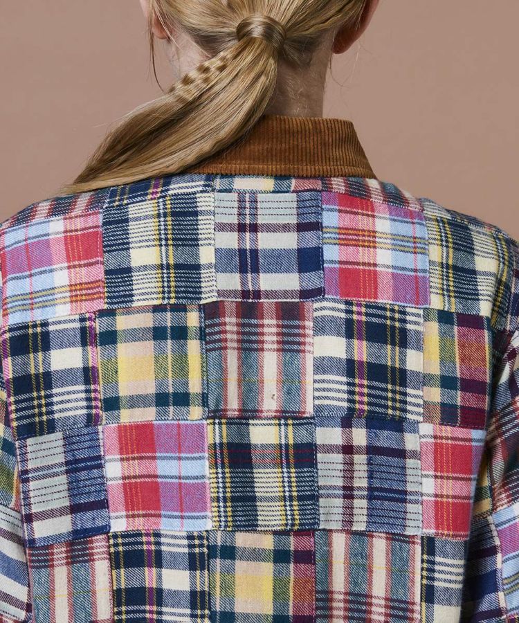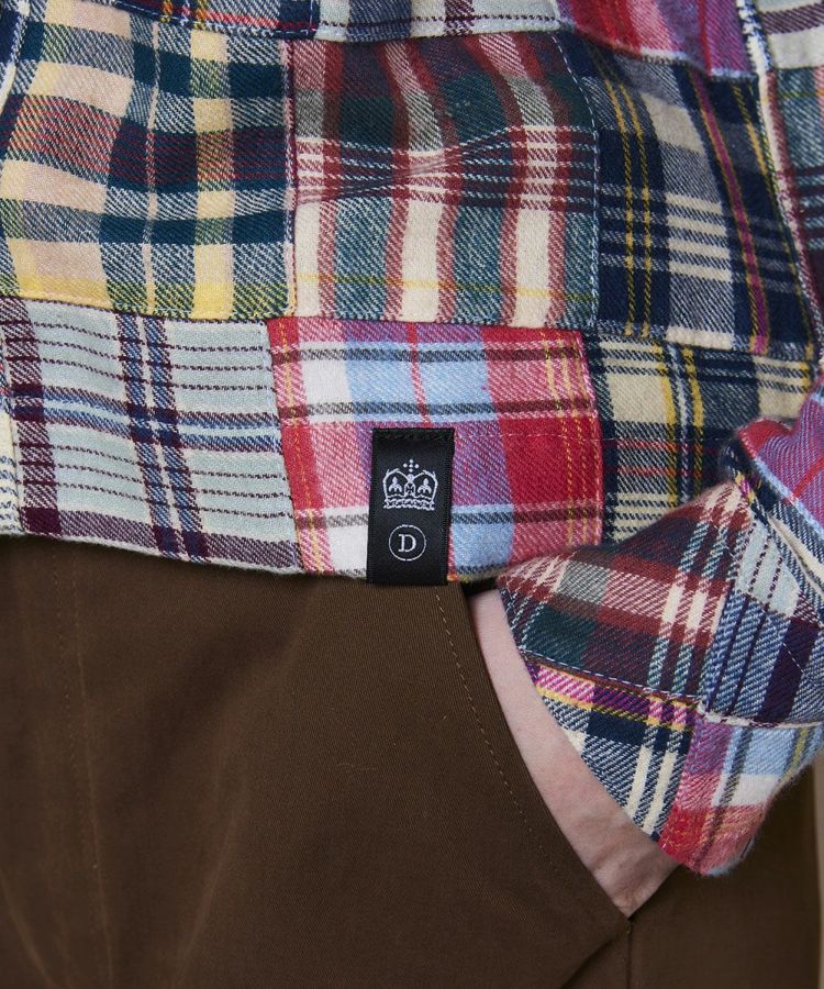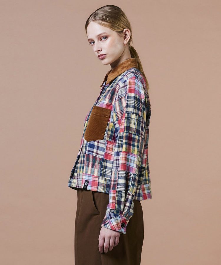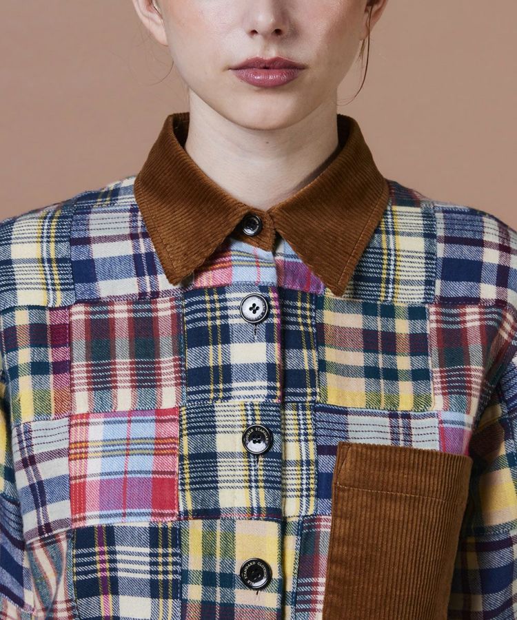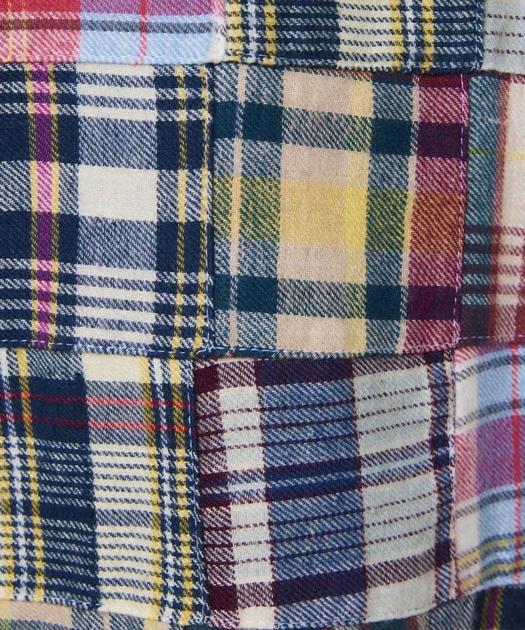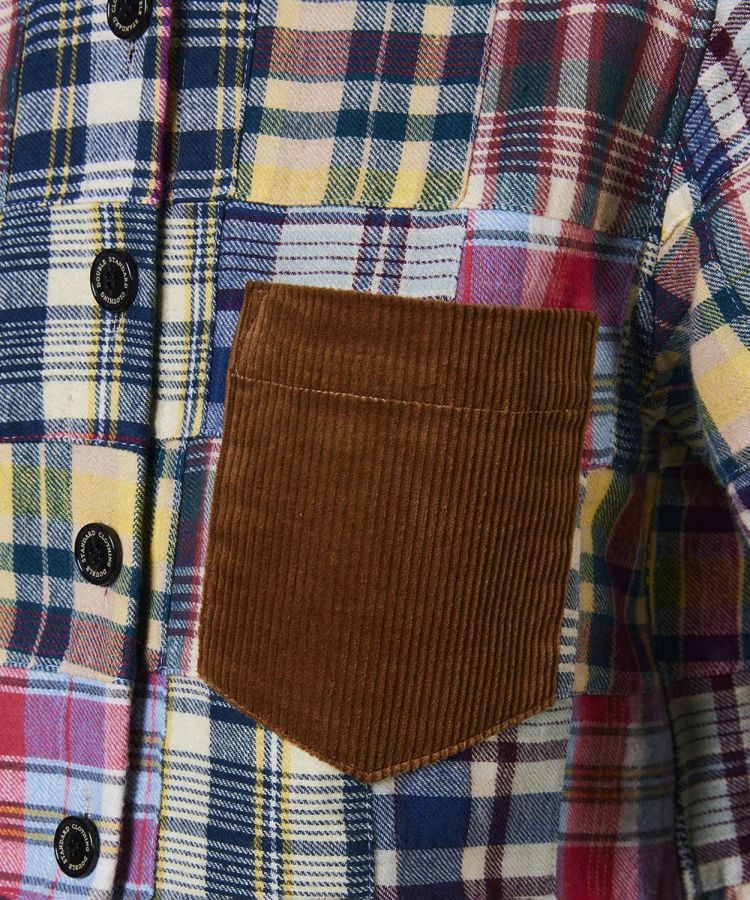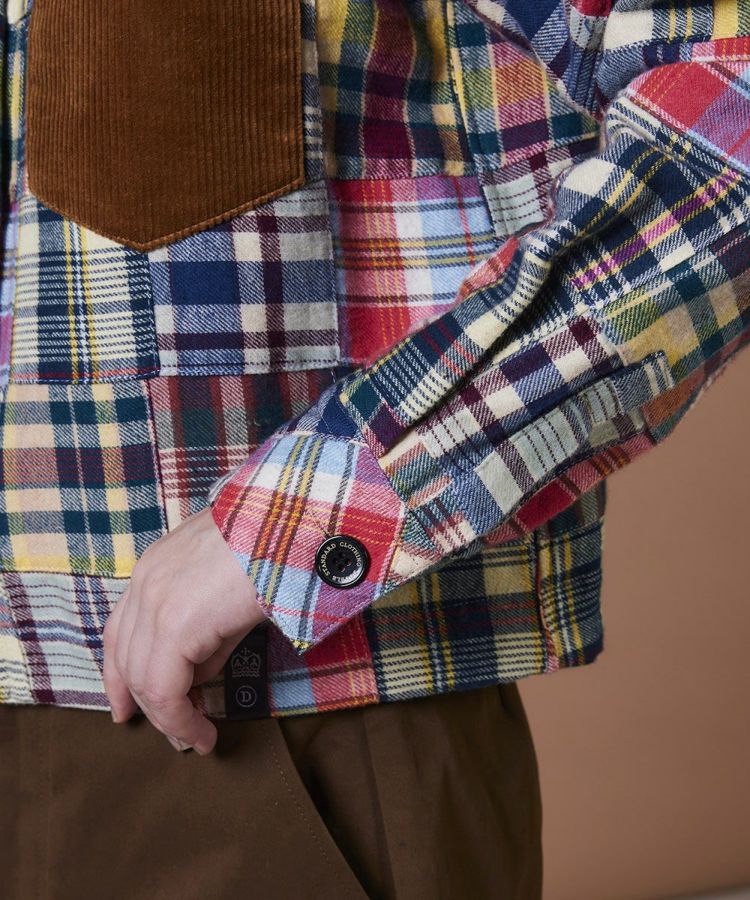 インドの伝統的なマドラスチェックを使用した、パッチワークデザインのシャツ。熟練の職人が一つひとつ丁寧に縫い合わせた、こだわりの一枚です。秋冬らしい起毛ネル素材に襟元とポケットにはコーデュロイをあしらい、表情豊かなアクセントに。スラックスなどシンプルなボトムスと合わせるのがおすすめです。