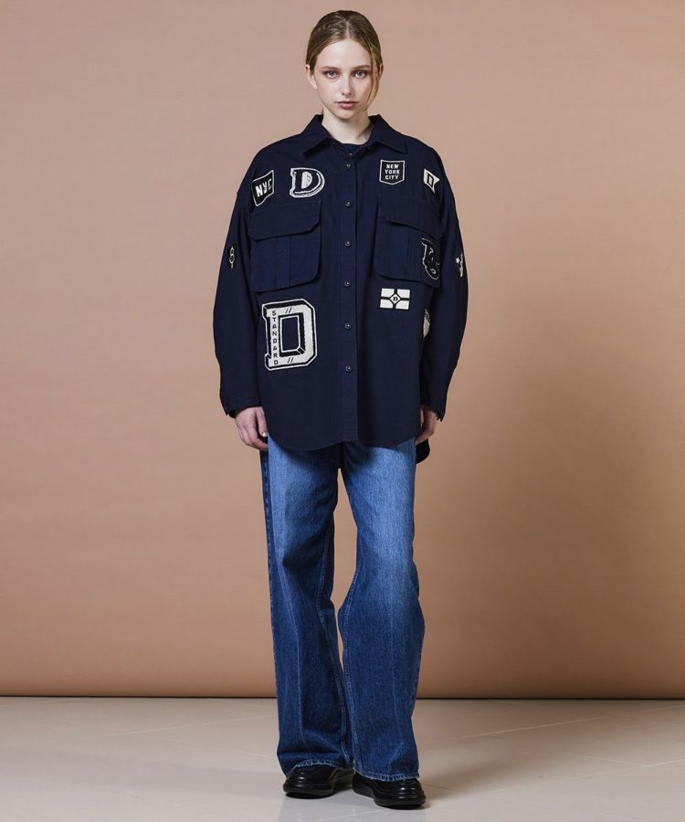 アメリカンヴィンテージなムード漂う、存在感抜群のミリタリージャケット。ユーズド感が出るように特殊な染色方法を施し、味わい深い風合いを表現しました。全体にあしらったオリジナルワッペンがカジュアルさをプラス。デニムのようなタテ落ち感が楽しめるため、経年変化による表情の変化も楽しめます。