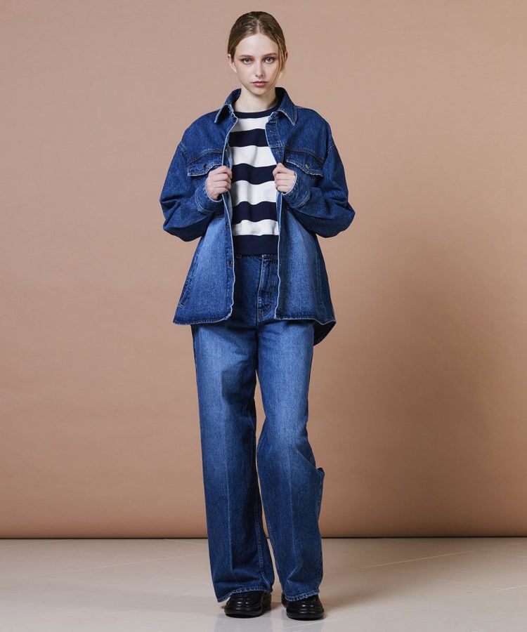 セルビッチ風の凹凸感と、弱テンションで織り上げた生地がヴィンテージライクなデニムシャツ。ゆったりとしたシルエットで腰まわりをさりげなくカバーしてくれます。1枚着はもちろん、羽織でも使える優秀さが魅力的。同素材のデニムパンツ(型番:0206381253)と合わせれば、抜け感のあるデニムセットアップスタイルを楽しめます。