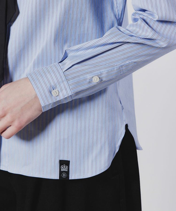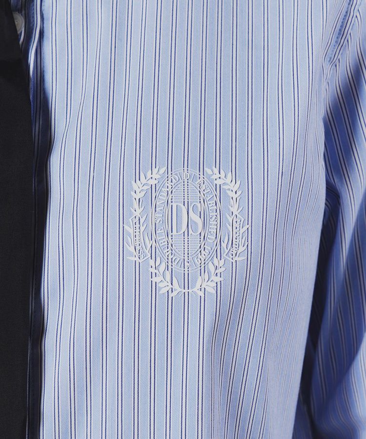 高品質・高性能のブロード生地で仕立てたシャツ。コットンナイロン素材でしっかりとしたストレッチ性があるので、きちんと感がありながらもストレスフリーな着心地が魅力です。ミニマルなシャツに、オリジナルの圧着エンブレムのプリントがアクセントに。取り外し可能なネクタイを付けて楽しむのが今季っぽいコーディネートの鍵です。