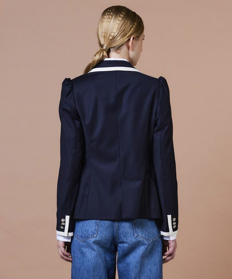 落ち着いたネイビーカラーとクラシカルなデザインが魅力のジャケット。なめらかな手ざわりと上品な光沢を持つウールシルク素材を使用し、見た目の美しさと快適な着心地を両立しました。ボタンを留めればハンサムな印象に、さっと羽織ればこなれ感のあるスタイルに。シャツと合わせたきれいめコーデはもちろん、デニムなどでカジュアルダウンした着こなしもおすすめです。