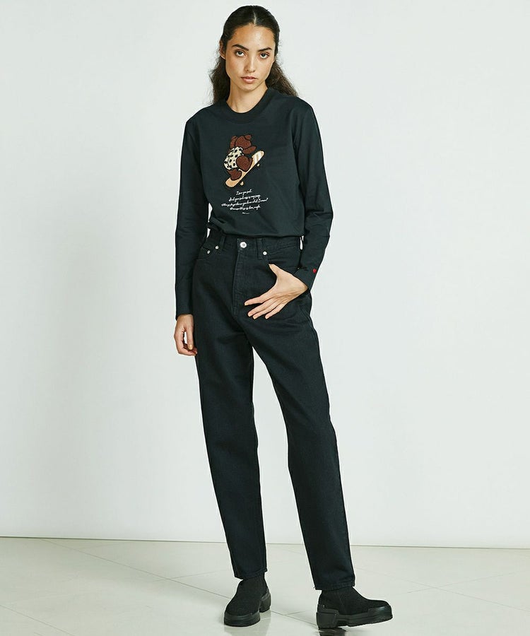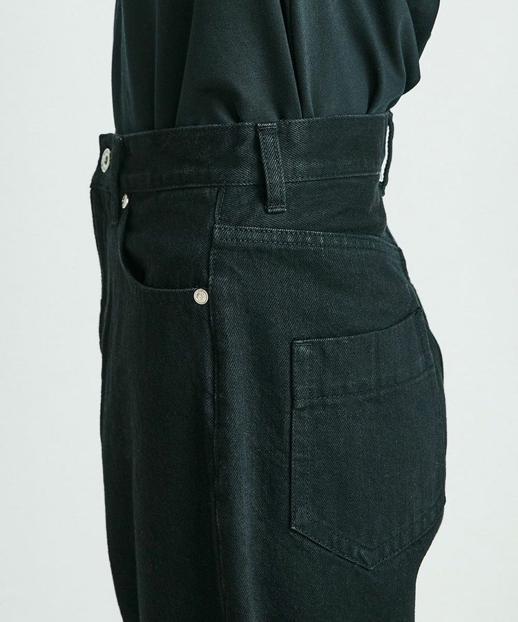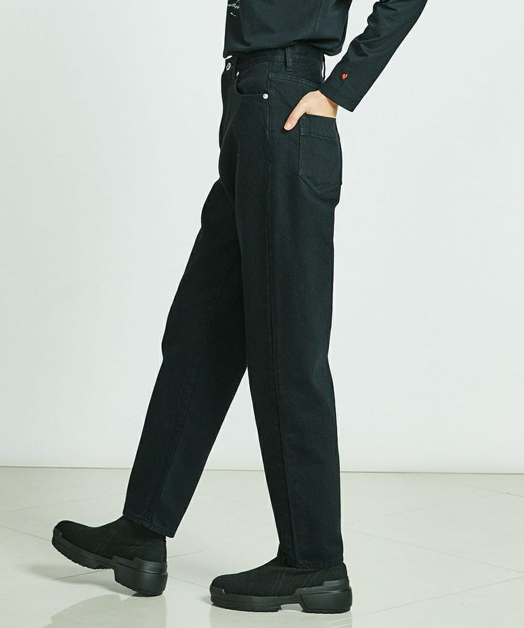 ハンサムな着こなしを実現する、ストレートシルエットのデニム。自然なかすれ感のあるブラックとハイウエストが、こなれた印象を与えます。シンプルなトップスをインして合わせたり、マニッシュにコーディネートするのもおすすめ。バックのダブスタのロゴがアクセントになっています。