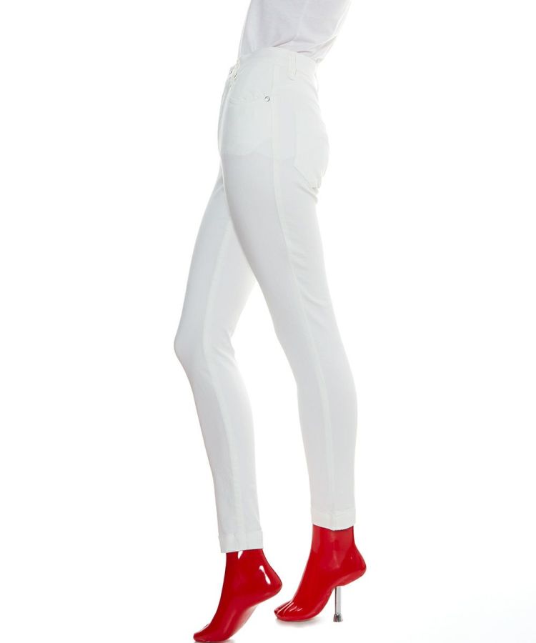 夏スタイルに1本は持っておきたいホワイトデニムパンツ。世界シェアトップクラスを誇る、トルコのデニム素材メーカーISKO社のデニム素材を使用しています。抜群のストレッチ性を備えているため、細身のスキニーシルエットでも穿き心地はノンストレス。ウエストまわりをすっぽりと包み込む設計で安定感もあり、快適に過ごせます。