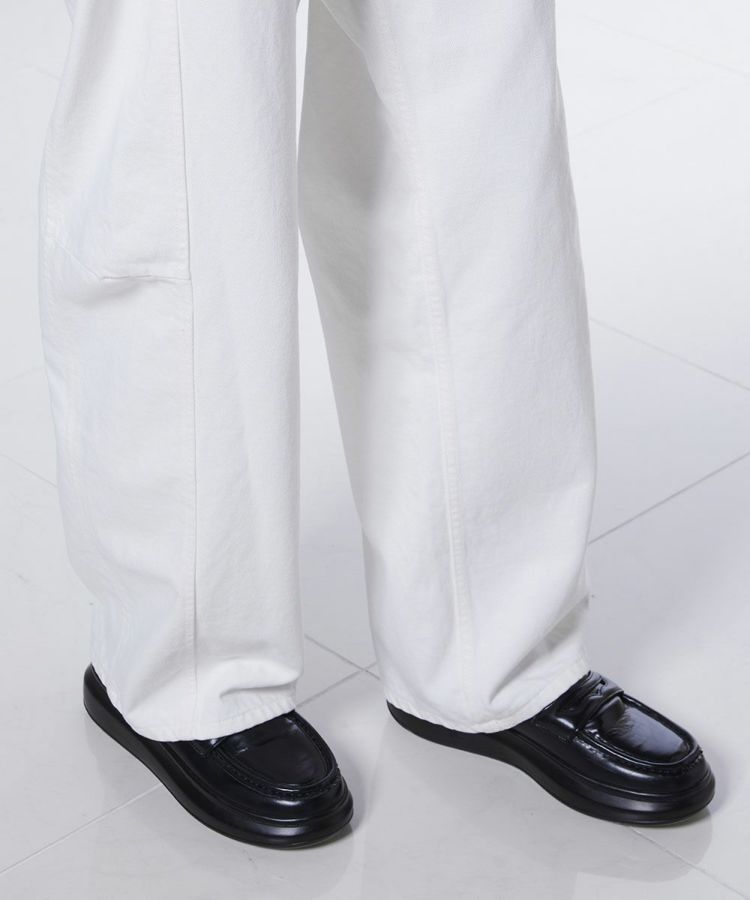 ナチュラルな表情が魅力のホワイトデニムパンツ。程よい膨らみ感のあるムラ染めデニムにニドム加工を施し、ユーズド感をプラスしました。カーブシルエットで気になる部分をさりげなくカバーしつつ、脚長効果も発揮。ボリュームのあるデザインは、コンパクトなトップスと合わせるとバランスよくスタイリングできます。