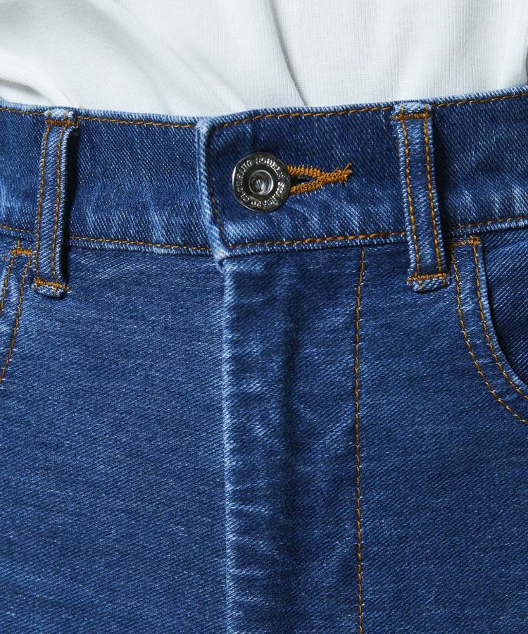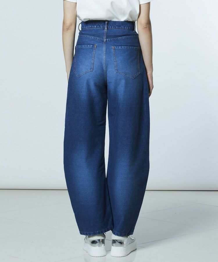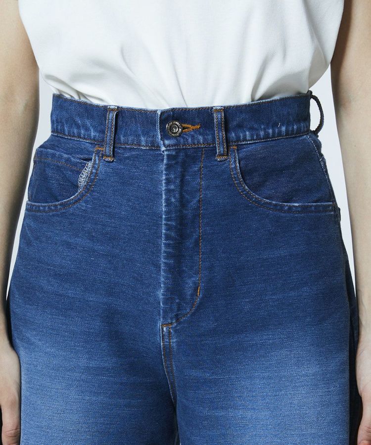 ヴィンテージライクな表情が魅力のニットデニムパンツ。伸縮性に優れたニット素材を使用しながら、見た目は本格的なデニムのような風合いに仕上げ、快適な穿き心地とカジュアルなムードを両立しました。カーブシルエットが気になるラインを自然にカバーしつつ、裾に向かってすっきりと細くなるデザインで脚のラインをきれいに演出。Tシャツや鮮やかなニットとも相性が良く、デイリーに活躍する万能な一本です。
