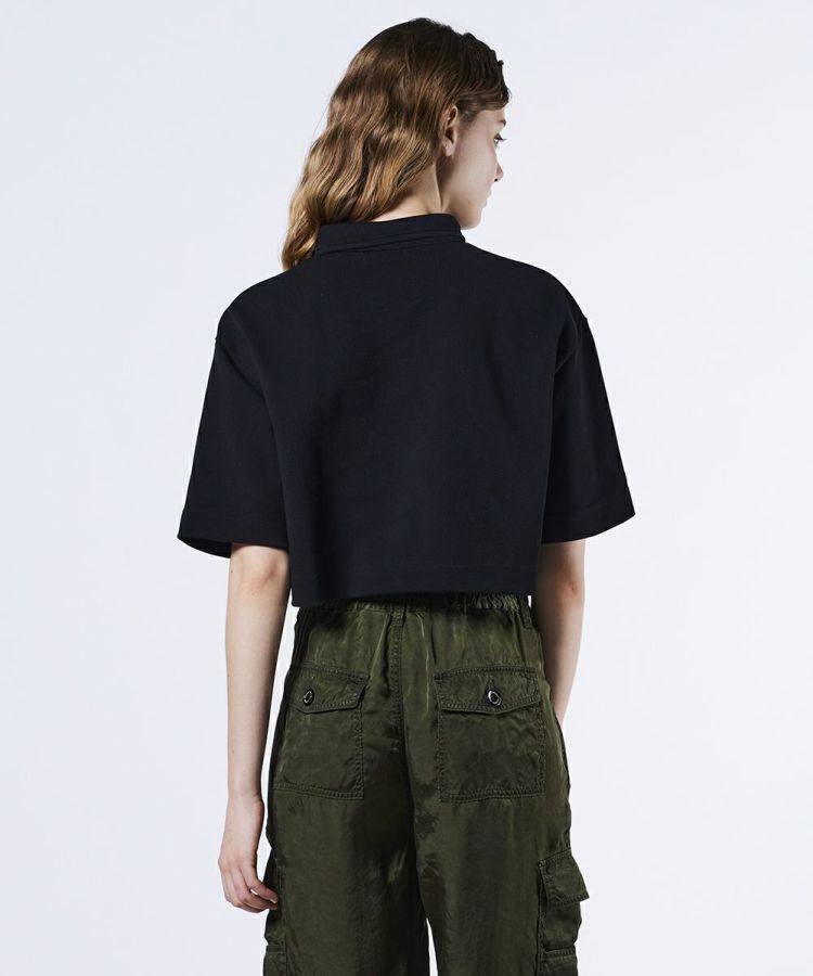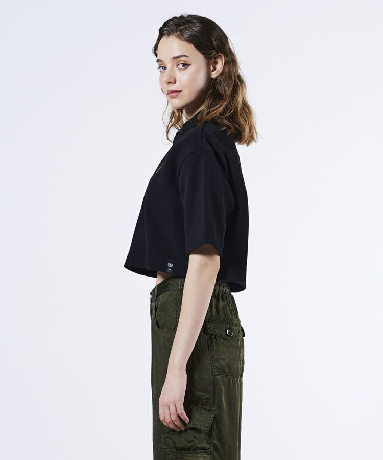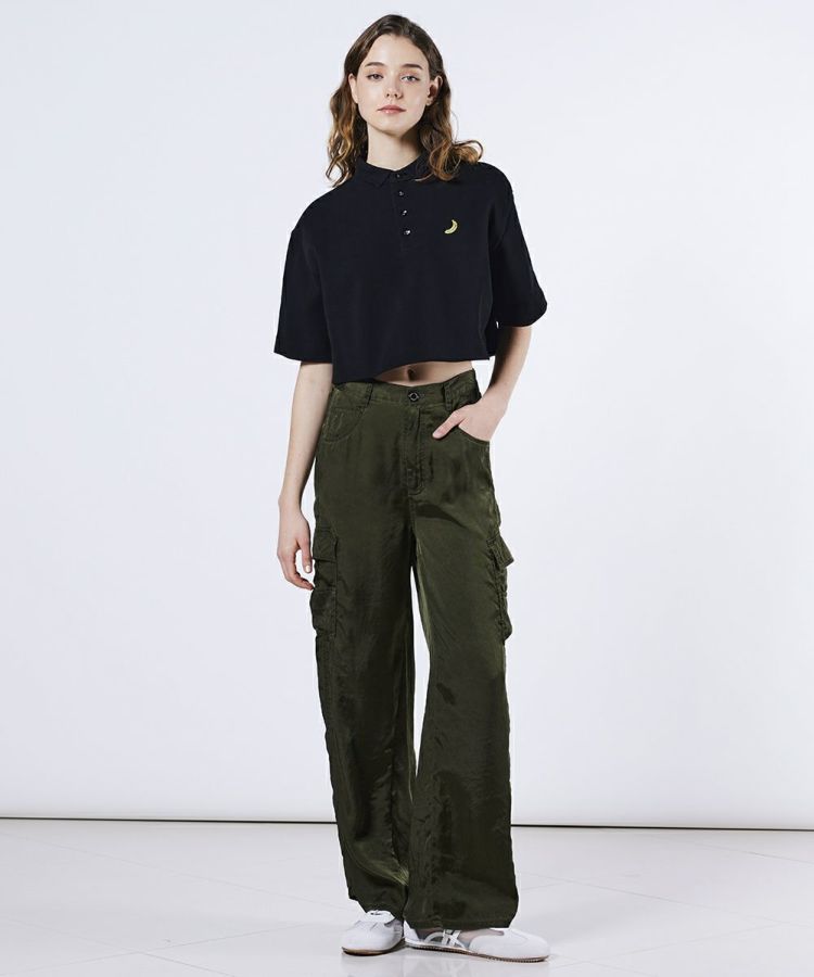 型崩れしにくい、丈夫な鹿の子素材を使用したポロシャツ。襟元には編み立てリブを採用し、きちんと感を残しつつもカジュアルな印象に仕上げました。袖丈はやや長め、全体の丈感はトレンドのクロップド丈で、どんなボトムスともバランス良く合わせられる優秀さが魅力。胸元にあしらったバナナ刺繍のワンポイントが、遊び心をプラスしてくれます。
