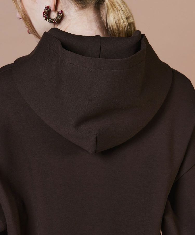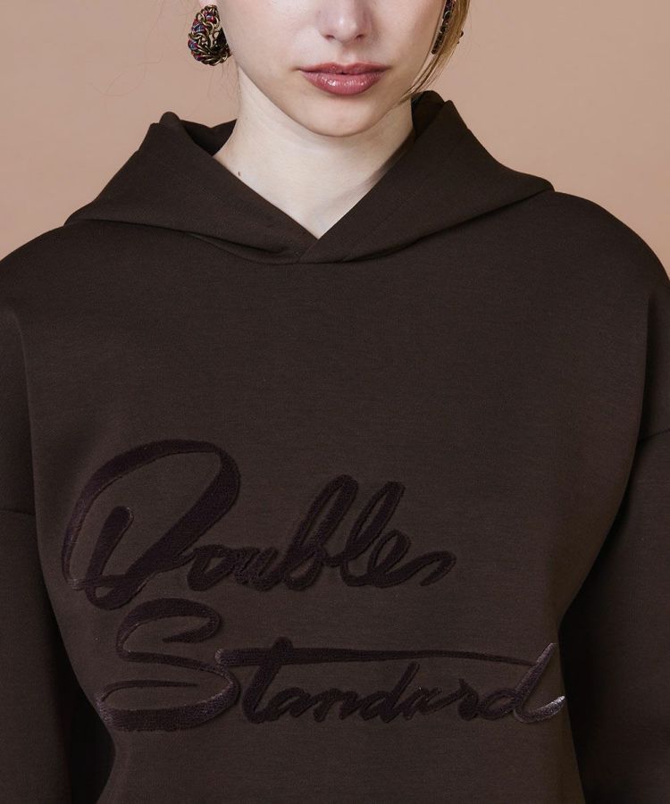 ダブスタロゴをハブラシのような立体感のある刺繍で表現したパーカー。刺繍とボディを同系色でまとめることで、さりげない存在感と上品さを両立させました。動きやすく保温性にも優れたダンボール素材を使用しており、肌寒い季節にぴったりの一枚。柔らかな印象のブラウンとベージュのカラー展開で、大人かわいいカジュアルスタイルを楽しめます。