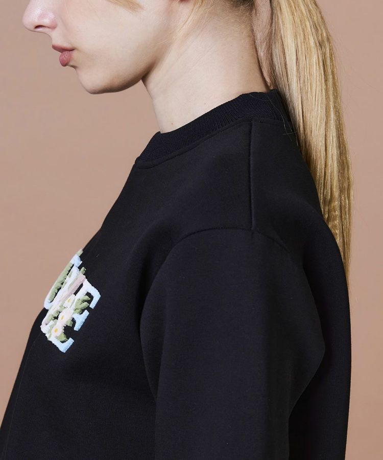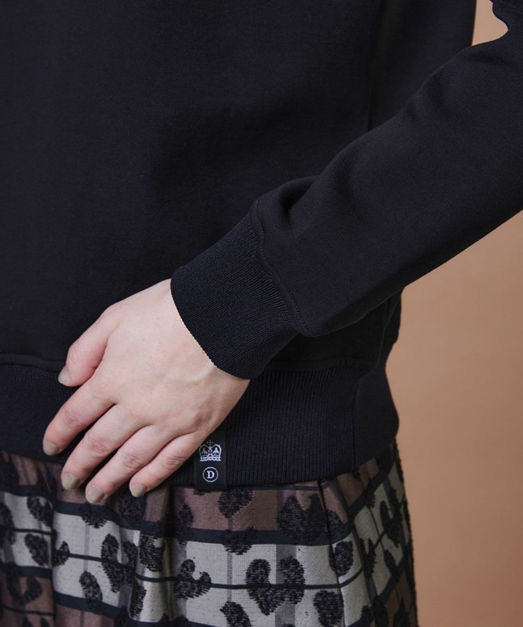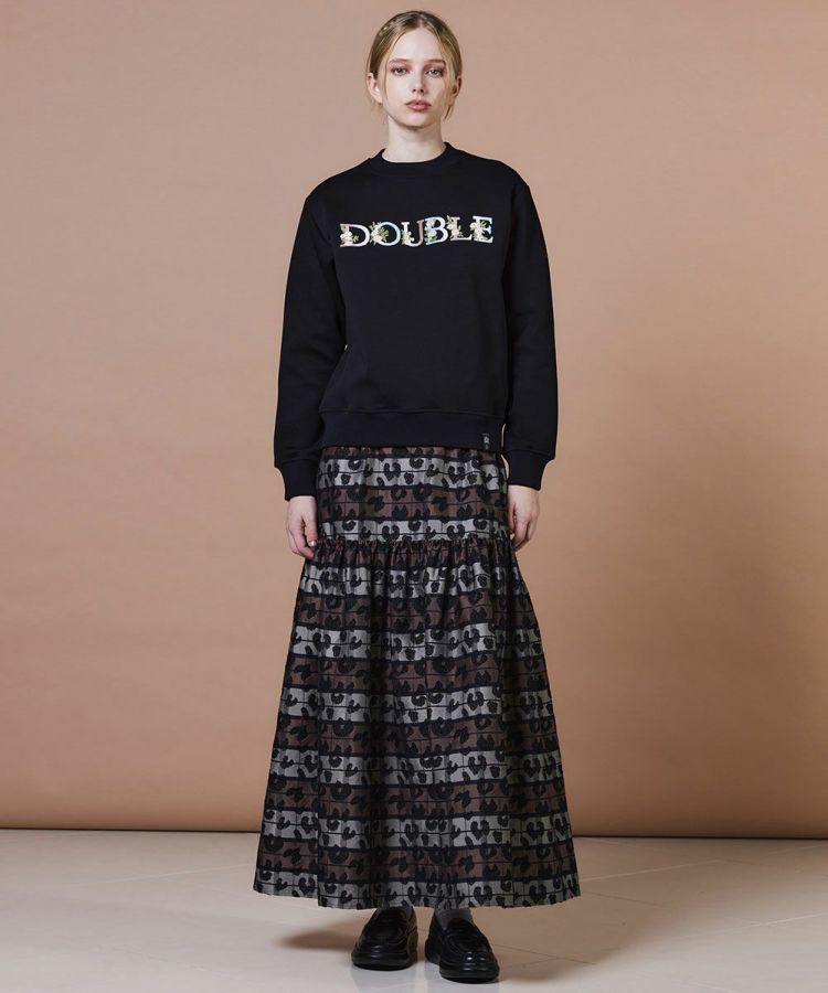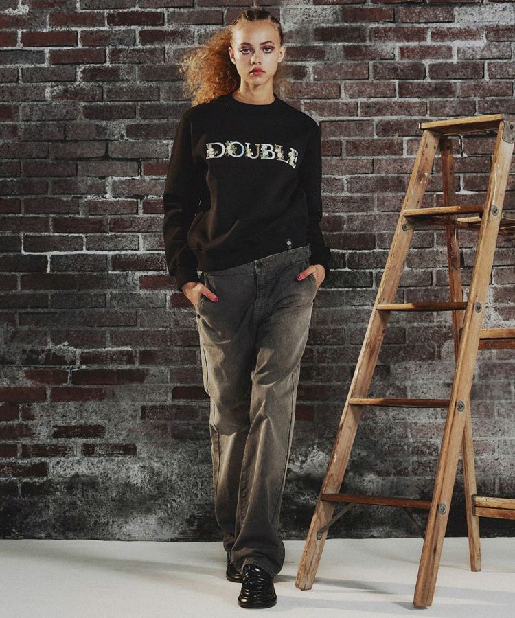 適度なハリ感となめらかな肌ざわりが魅力のダンボール素材を使用したニット。フロントには、ダブスタのレタリングに花をモチーフとした立体刺繍を施し、シンプルな中にもデザインアクセントをプラスしました。カラーは着回しやすいブラックと、コーデにやわらかくなじむブラウンの2色展開。カジュアルからきれいめまで幅広いスタイルで活躍します。