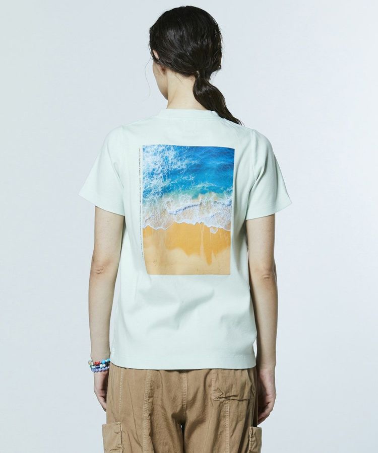 バックに配したフォトプリントが目を惹くTシャツ。ピンク、ミント、ブルーの3色展開で、それぞれ異なるグラフィックを施し、カラーごとに違った表情を楽しめます。フロントにはブランドモチーフのマークとグラフィックをさりげなくあしらい、程よいアクセントに。鮮やかすぎないカラーリングでコーディネートに取り入れやすく、色違いで揃えたくなるアイテムです。