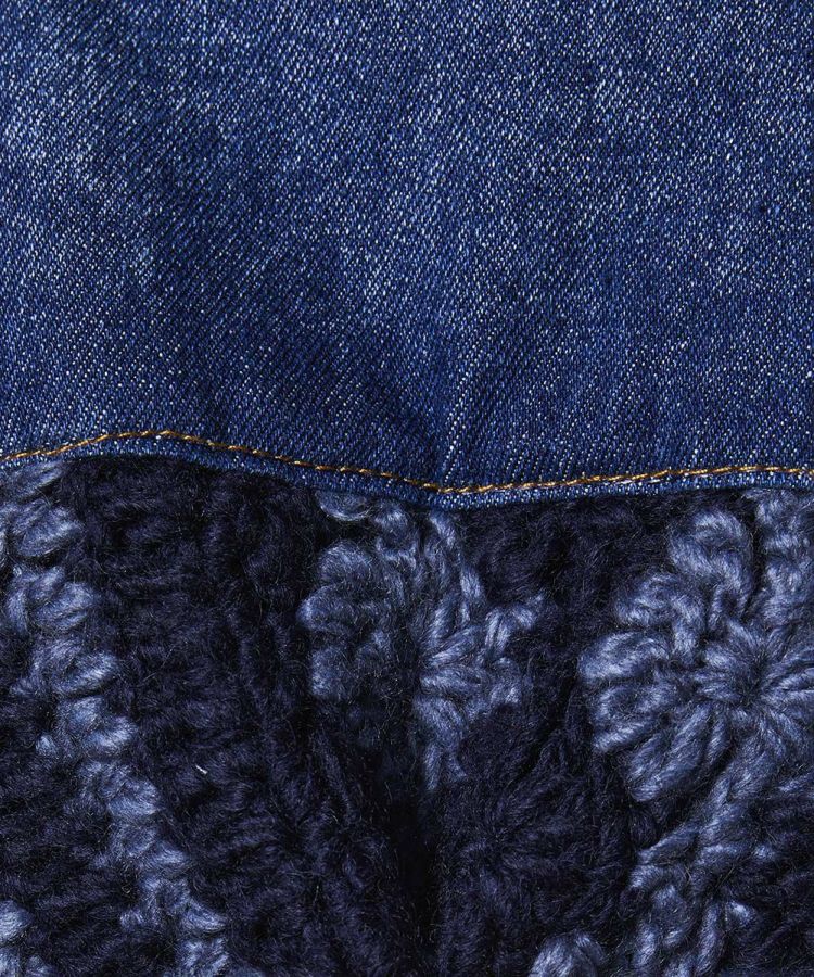 ハンドメイドニットをデニムコンビに仕上げた、ダブスタらしいジャケット。クラフト感をプラスし、他にはないデザインに仕上げました。主役級のアイテムは羽織るだけで、いつものコーディネートをクラスアップ。ホワイトデニムなどとも相性がよく、爽やかな着こなしを叶えてくれます。