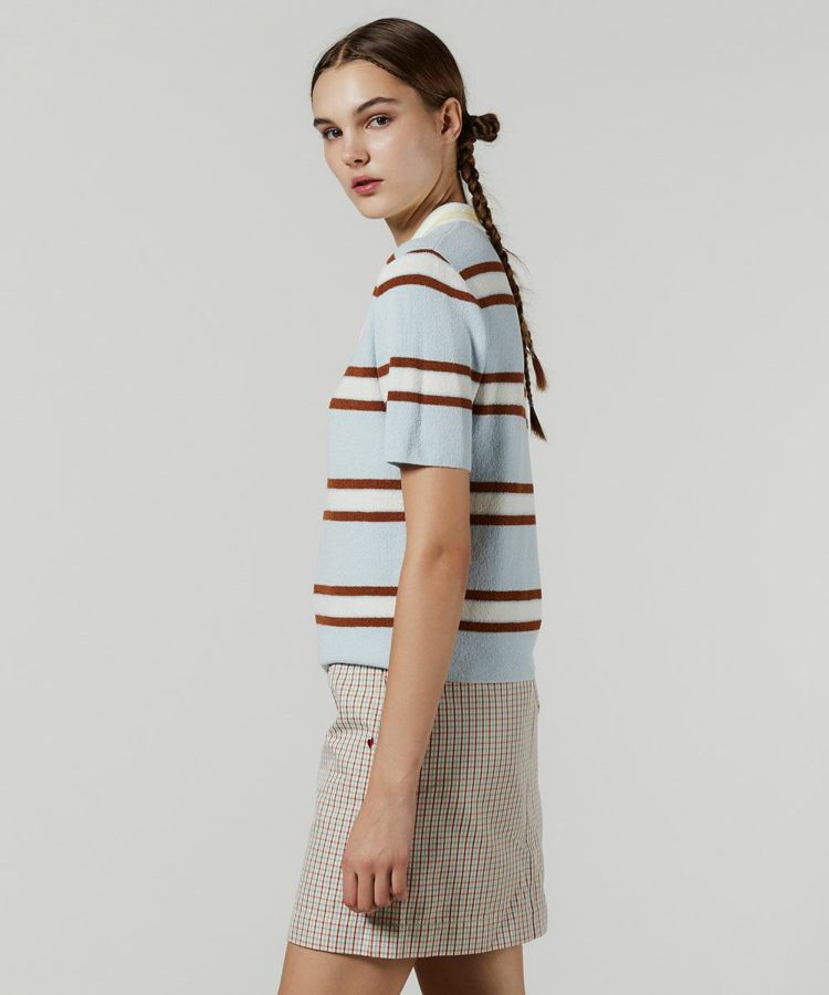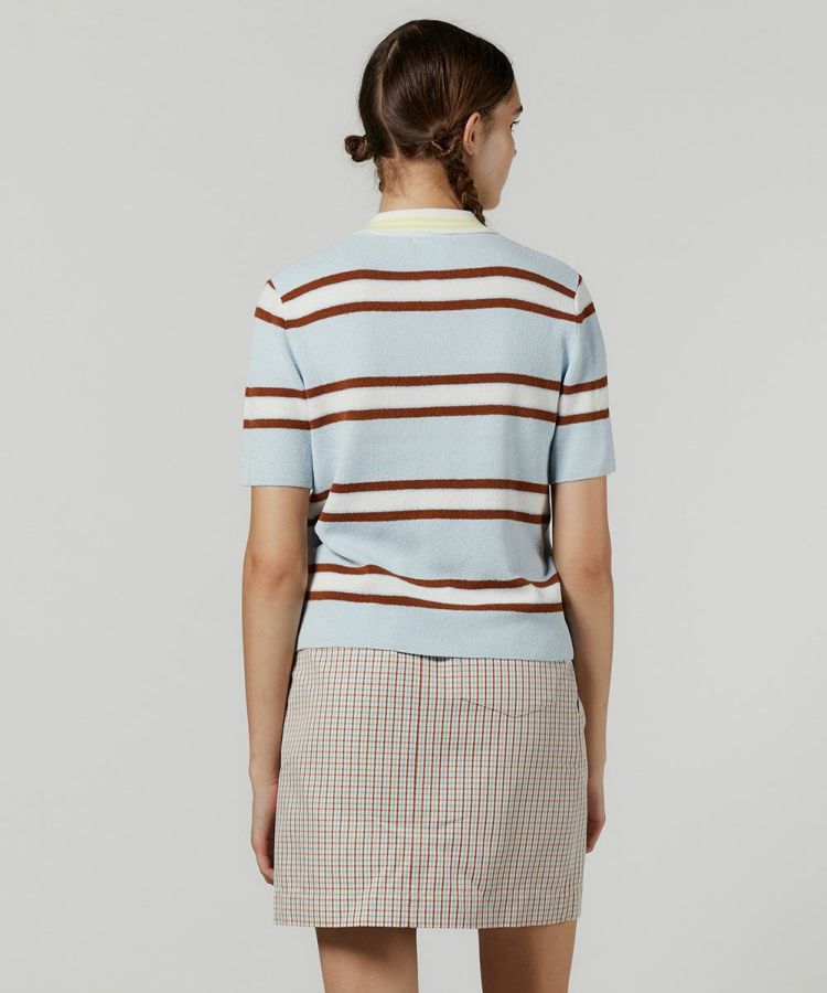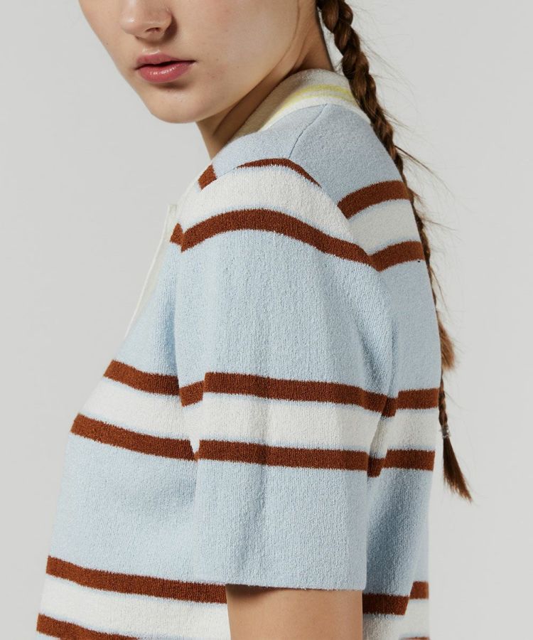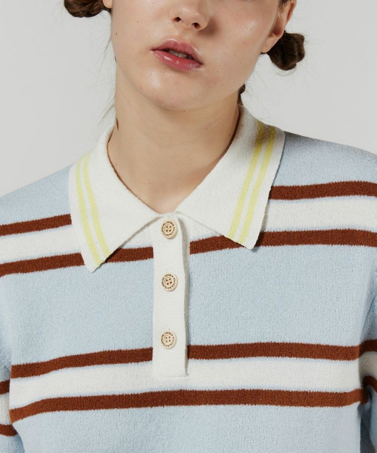 ノスタルジックなバイカラーがかわいいボーダー柄のポロシャツ。襟元のイエローも心地良いアクセントになり、これ一枚で今季らしいアイビールックが叶います。また、パイルのような柔らかなニット地もポイント。リラクシンなムードがあり、肌触りも抜群です。程よくコンパクトなシルエットで、コーディネートするボトムを選ばないのも魅力的。