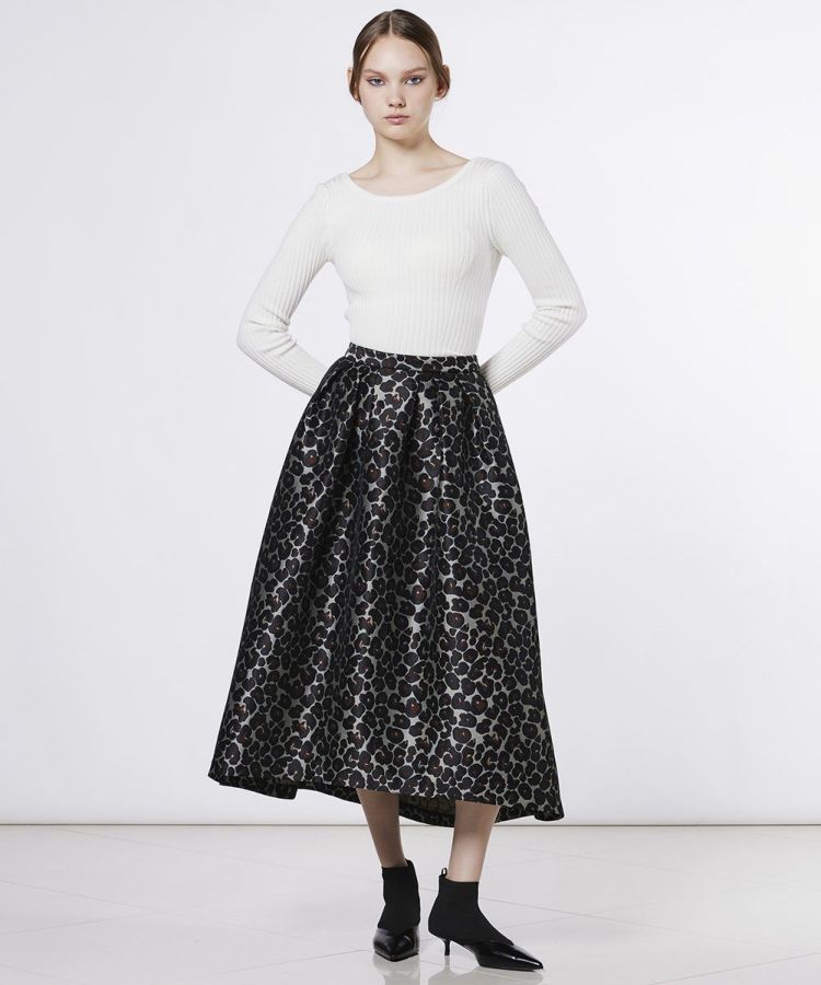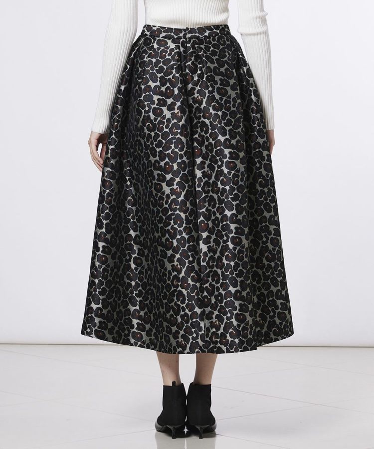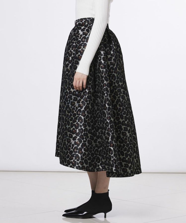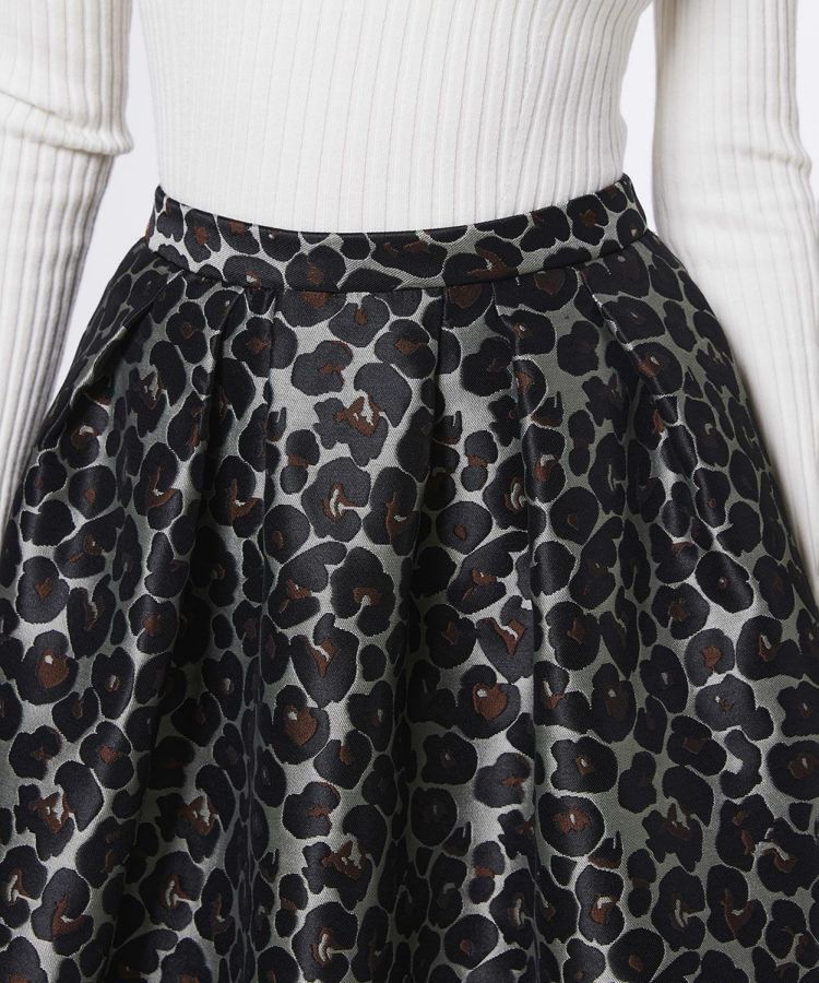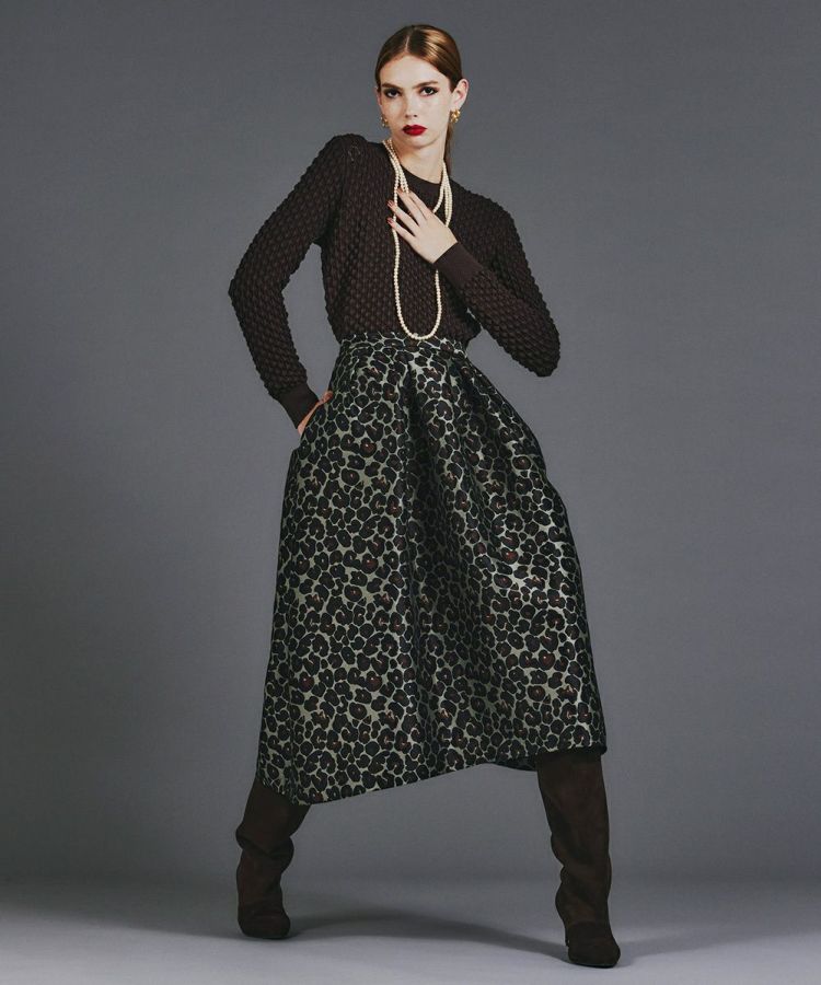 ジャガード織で仕上げた、重厚感のある生地が上品な印象のスカート。丁寧に織り込まれたヒョウ柄がさりげなく表情を生み出し、インパクトのあるデザインでコーディネートに華やぎをプラスします。シンプルなトップスやヒールと合わせるだけで、レディライクで洗練された着こなしが完成。存在感のある一枚は、普段のスタイルをワンランク上の印象に仕上げてくれます。