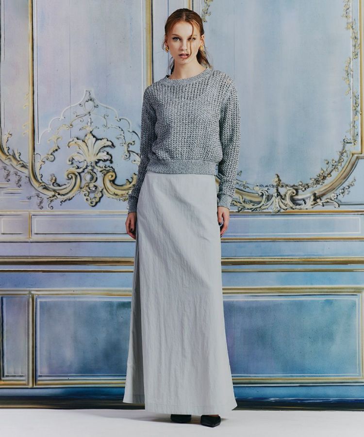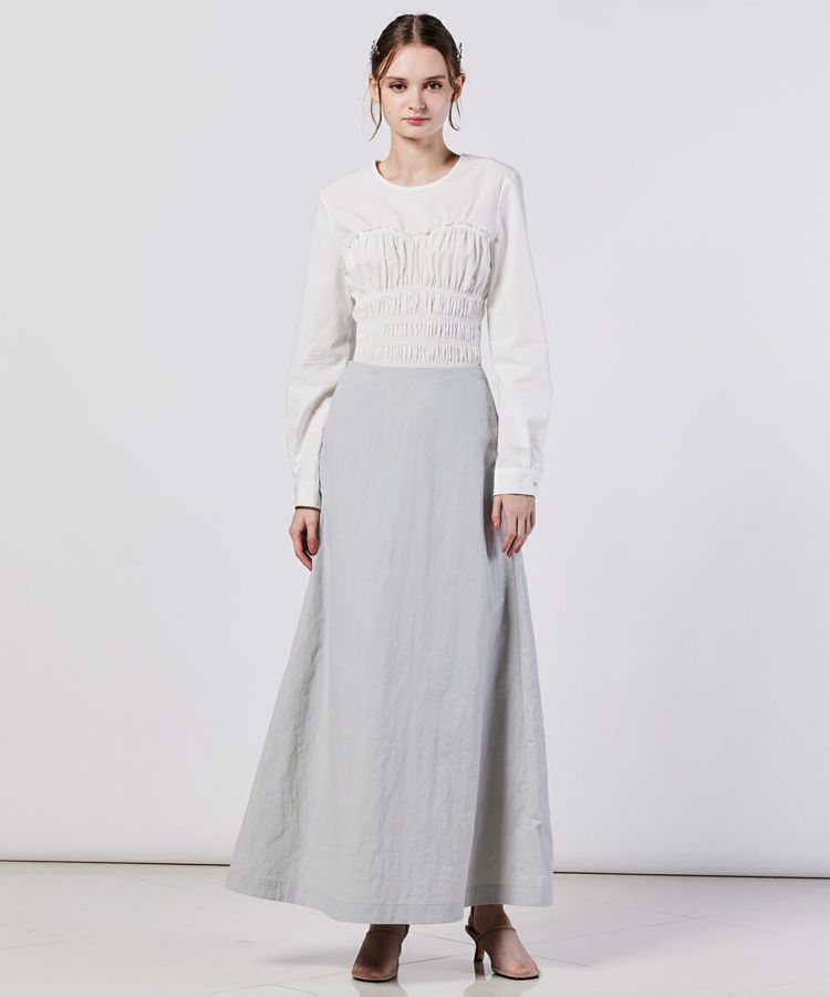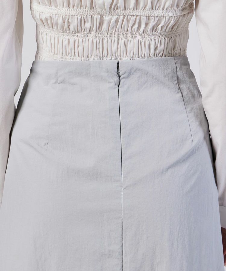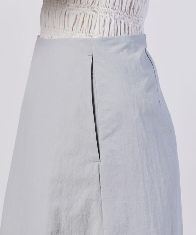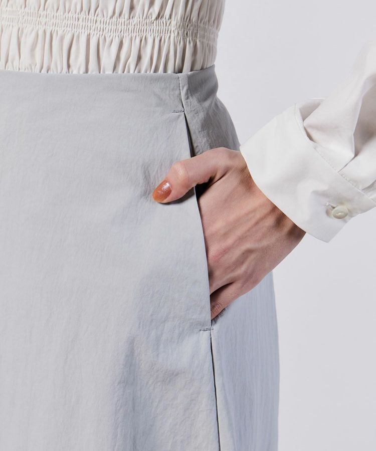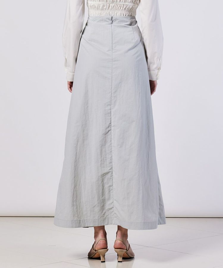 ナイロン素材のパリッとした質感を活かし、きれいめな印象に仕上げたロングスカート。ウエスト周りはコンパクトに、美しいAラインのシルエットにすることで足元をすっきり演出できるのが魅力です。ベーシックなカラーリングなので合わせるトップスを選ばないのもうれしいポイント。足先までのマキシ丈でありながら、軽やかに着用できます。