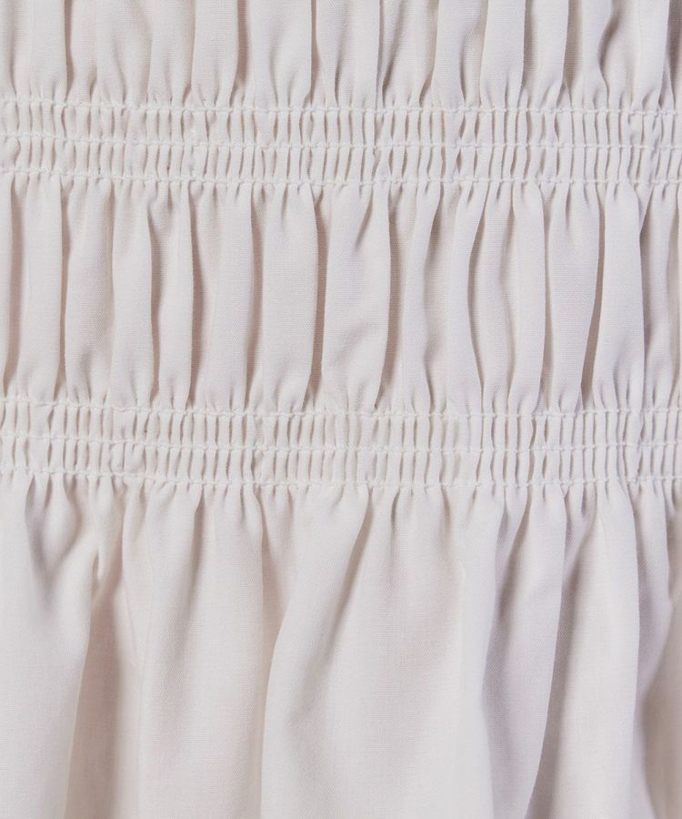 シャーリングのデザインとペプラムになった裾がフェミニンな印象を与えてくれるブラウス。シルエットにもメリハリができるので、パンツを合わせてもスカートを合わせても、全身をスタイル良く見せてくれるのが魅力です。また、パリッとしたハリのある生地感もポイント。柔らかな印象ながらもきちんと感が出るので、オフィスコーデにも取り入れられます。