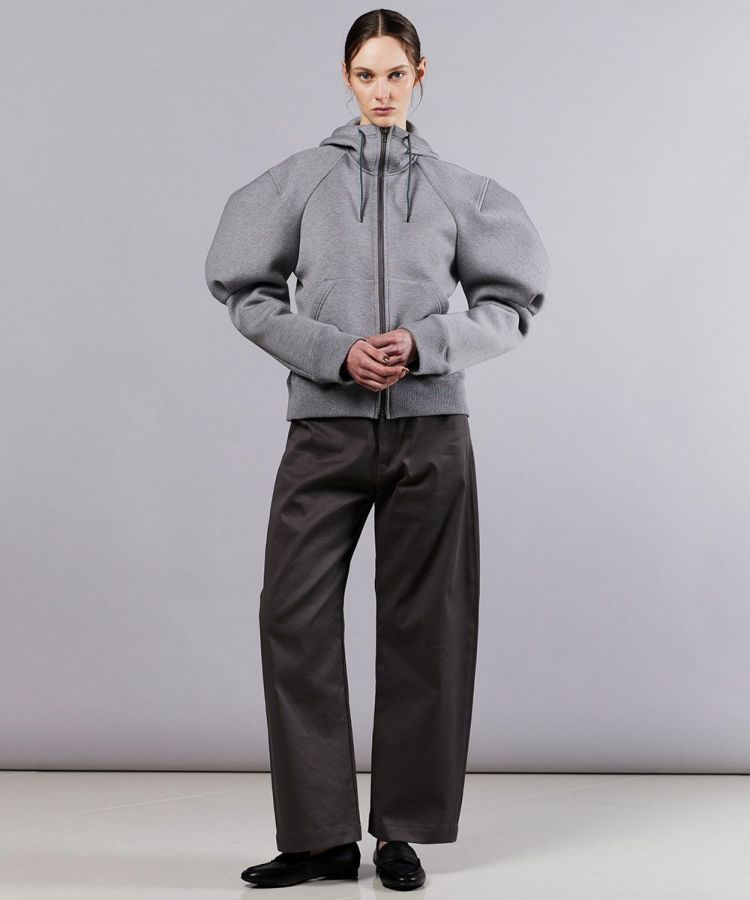 保温性に優れたダンボール素材を使用し、快適な着心地を実現したパーカー。立体的なペプラムデザインに仕上げ、フェミニンな要素をプラスしました。ふんわりと広がるシルエットが女性らしい華やかさを演出。ボトムスはシンプルにまとめるとバランスよく仕上がり、デイリーからお出かけまで幅広いシーンで活躍します。