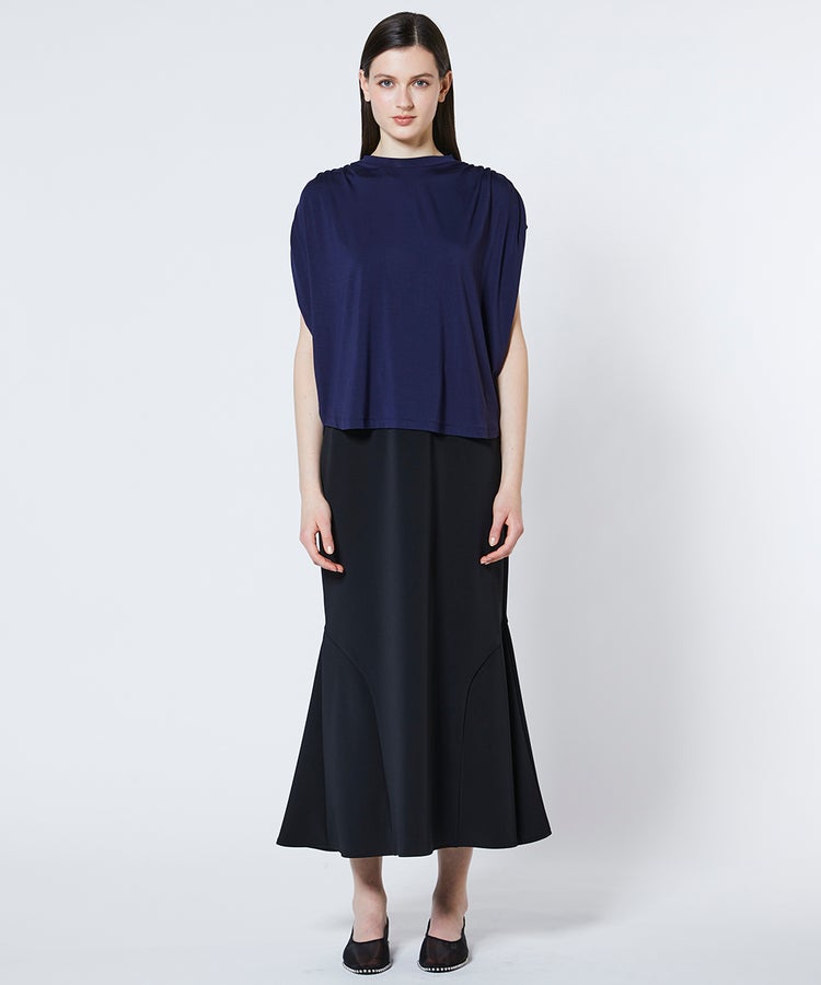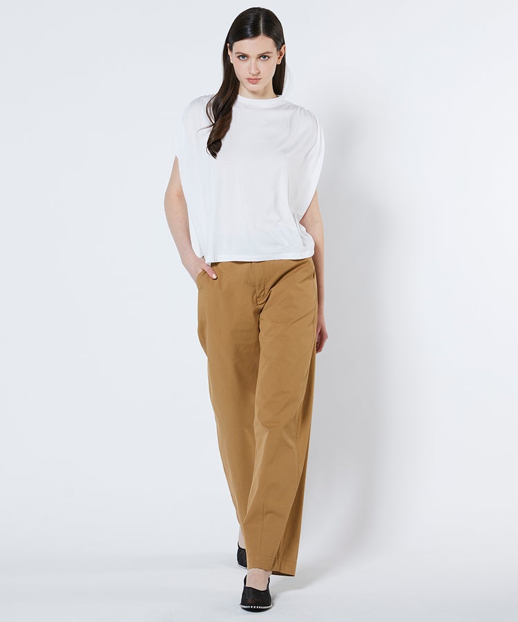 肩にあしらったギャザーがさりげないアクセントを添えるカットソー。なめらかな肌ざわりと心地よい伸縮性を兼ね備えたベア天竺素材を使用しました。シンプルな中にも立体的なシルエットが生まれ、着るだけでほどよい存在感をプラス。カジュアルからオフィスシーンまで幅広く活躍します。