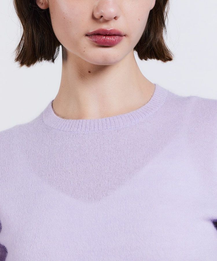 1歳未満のアンゴラ産毛から刈り取った希少繊維、SUPER KID MOHAIRを使用したトップス。非常に細く柔らかな毛糸で、ふんわりとした肌触りが抜群です。混紡するウールもエクストラファインウールのため、他にはない柔らかさと温かさが魅力。上質な素材を引き立たせたシンプルなデザインで、あえての半袖がこなれ感を出してくれます。
