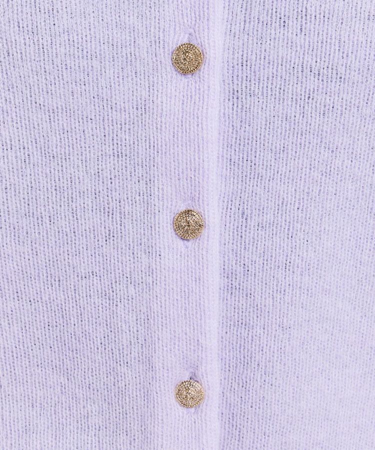 1歳未満のアンゴラ産毛から刈り取った希少繊維、SUPER KID MOHAIRを使用したカーディガン。非常に細く柔らかな毛糸で、ふんわりとした肌触りが抜群です。ベーシックなクルーネックタイプで、アンサンブルできれいめに着こなすのはもちろん、カジュアルなカットソーに合わせても品良く仕上げてくる一枚。金ボタンがさりげないエレガンスをプラスしています。