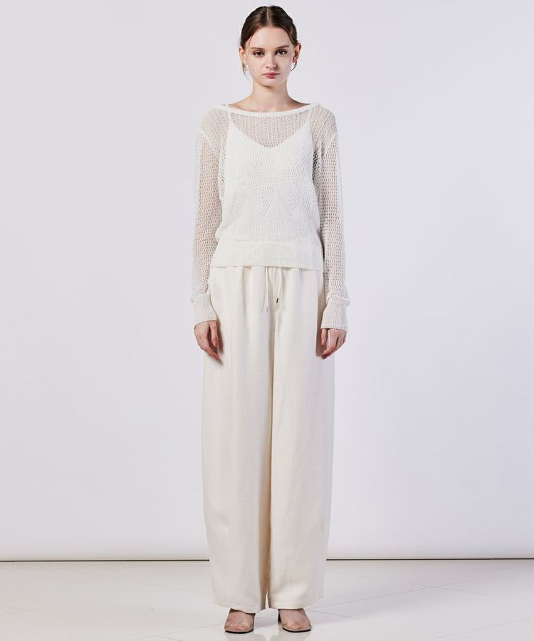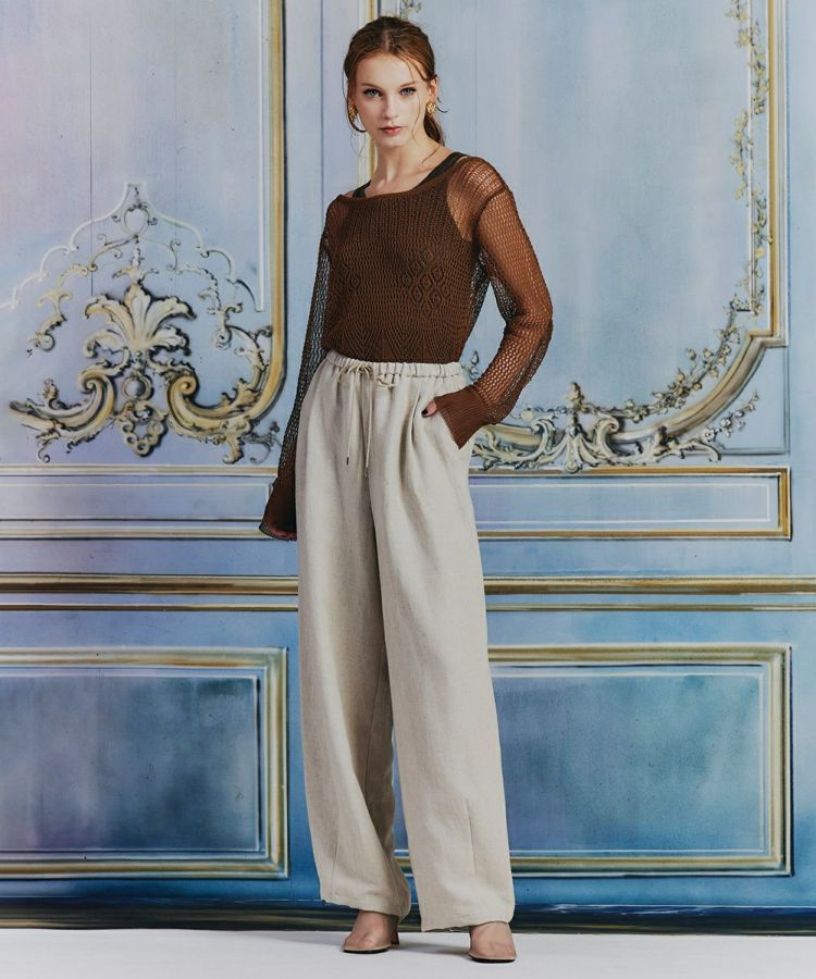 柔らかな素材感と繊細な編み模様がかわいらしい、透かし編みのニットトップス。タンクトップで肌見せしたり、配色のロングスリーブをコーディネートしたりと、インナーとの合わせが楽しみになるアイテムです。前後どちらでも着用できるのもうれしいポイント。リボンのデザインが、どんなコーデにもフェミニンな印象をプラスしてくれます。